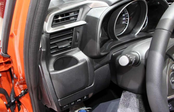 En revanche, la comparaison avec le HR-V doit s'arrêter là. Car si le Jazz a l'avantage d'être moins haut sur pattes, favorisant ainsi la bassesse du centre de gravité, il faut souligner que les pneumatiques offerts ici n'ont absolument rien à voir ! En effet, quand un HR-V de basse s'équipe de pneus de 16 pouces de 215 mm de large, la pauvre Jazz doit se contenter de pneus bien plus modestes : des 15 pouces de 185 mm de large ...