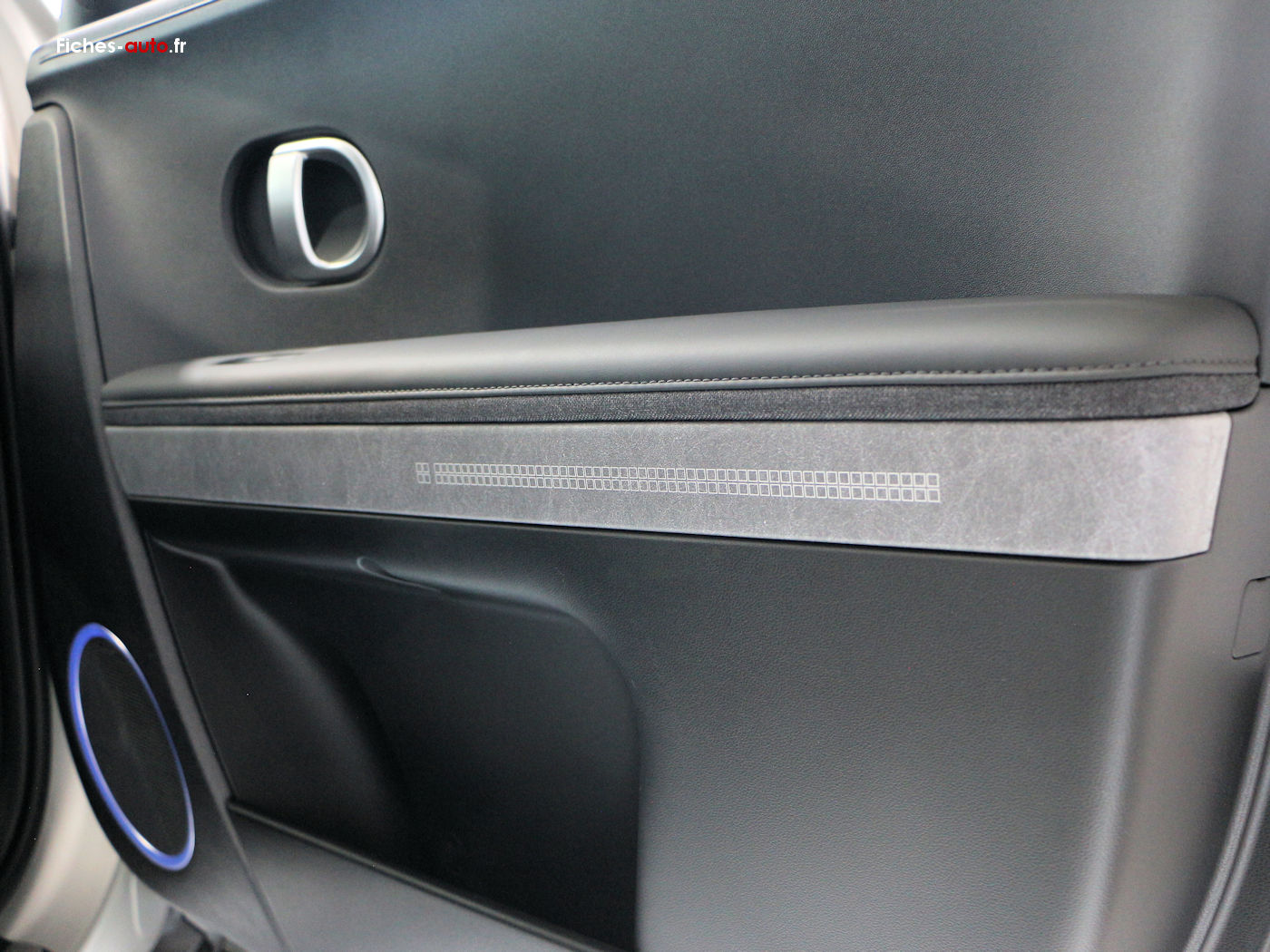 A partir de 56 000 euros : Affichage caméra des angles morts // Affichage tête-haute sur pare-brise avec réalité augmentée // Aide au stationnement arrière avec fonction freinage // Calandre rétroéclairée // Caméra 360° // Chargeur inversé (V2L) - Adaptateur pour prise de charge extérieure et prise 230V sous les sièges arrière // Clignotants avant et arrière à LED // Commande de stationnement à distance via télécommande (avant / arrière / créneau / bataille) // Eclairage d’ambiance intérieur à LED personnalisable // Feux avant Bi-LED type projection // Hayon mains-libres intelligent // Jonc de vitres noir laqué // Ligne de bas de caisse et passages de roues grain métal // Pare-soleils intégrés dans les portes arrière // Pédalier façon aluminium // Poignées de portes extérieures rétractables automatiquement // Prise 12V dans le coffre // Protections avant et arrière grain métal // Sellerie cuir (dossier et assise) // Sièges arrière chauffants // Sièges arrière coulissants électriquement // Sièges avant électriques à mémoire // Sièges avant multi-confort inclinables // Sièges avant ventilés // Système audio premium Bose® // Toit vitré panoramique avec plafonnier à LED // Vitres avant et arrière avec film acoustique