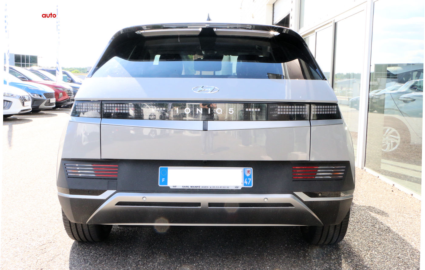 Suspensions. Leur souplesse amène un confort incomparable, mais avec quelques coups de raquette sur revêtement dégradé, ainsi que des réactions en appui parfois surprenantes. Il semble que ce point ait été corrigé sur les versions 2023.Eclairage j'ai eu plusieurs Hyundai dans le passé et l'éclairage n'a jamais été leur point fort, mais là on est clairement en recul, même par rapport à des modèles plus anciens (Tuscon, Santa Fe). Et en plus, il n'y a pas d'antibrouillards à l'avant. Ceci, associé à l'étroitesse des faisceaux lumineux, rend la conduite de nuit en montagne pénible.Essuie-glace arrière. La Ioniq 5 n'est pas la seule voiture d'où ce composant soit absent, mais c'est vraiment énervant.Infodivertissement. Il y a beaucoup de possibilités de réglages, mais tout ceci est mal organisé, manque de logique, avec des chemins multiples vers la même fonction. Le planificateur est déjà un progrès, mais un "peut mieux faire" s'impose ici. A noter la qualité audio moyenne (en dépit de la présence d'un soi-disant Bose Premium), et l'absence de connexion Android Auto/Airplay sans fil. Et je ne parle pas de tous les bip-bip en route, heureusement qu'une simple pression sur un bouton au volant permet de désactiver toutes les aides.Rayon de braquage moyen. (AWD HTRAC Electrique 306 ch Finition First Edition (modèle suisse), année 2022, 25000km)
