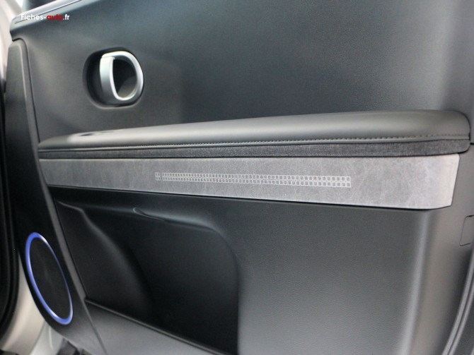 (Source Hyundai mars 2022) A partir de 43 600 euros : 7 airbags // Aide au stationnement arrière // Alerte de présence de passager arrière // Allumage automatique des feux // Assistance active à la conduite sur autoroute // Assistance active au maintien et au suivi de voie // Câble de recharge pour prise domestique // Câble de recharge Type 2 pour borne de recharge // Caméra de recul avec lignes de guidage dynamiques // Capteur de pluie // Chargeur embarqué tri-phasé 11 kW // Climatisation automatique bi-zone // Compatibilité Apple CarPlay et Android Auto // Compteurs numériques 12,3’’ // Détection de fatigue du conducteur // Feux arrière à LED type «Pixel» // Feux avant Bi-LED // Feux de jour et feux de position avant à LED type «Pixel» // Feux de route intelligents // Frein de parking électrique // Freinage d’urgence autonome avec reconnaissance // piéton et cycliste et fonction intersection // Freinage regénératif intelligent // Jantes alliage 19’’ // Limiteur de vitesse intelligent // Palettes de freinage régénératif modulable au volant (avec fonction i-Pedal) // Poignées de portes extérieures rétractables // Prises USB avant et arrière // Reconnaissance des panneaux de limitation de vitesse // Régulateur de vitesse adaptatif intelligent // Rétroviseurs extérieurs rabbatables électriquement // Services connectés Bluelink® // Siège conducteur avec support lombaire électrique // Sièges arrière coulissants avec dossier inclinable // Sièges avant réglables en hauteur // Système audio RDS, MP3, 4 HP et 2 tweeters // Système de navigation Europe avec mise à jour de la cartographie à distance incluse et services Hyundai Live // Système d’accès mains-libres et démarrage sans clé // Système multimédia avec écran couleur tactile 12,3’’ // Transmission à commande électrique // Vitres arrière surteintées