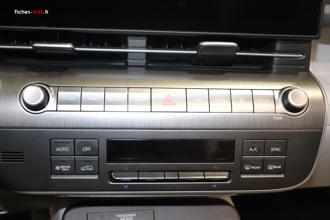 (Source Hyundai février 2023/ Versions électriques, équipements des hybrides indiqués plus bas) A partir de 40 850 euros : Accès mains-libres et démarrage sans clé // Aide au stationnement avant et arrière // Assistance active à la conduite sur autoroute // Assistance active au suivi de voie // Caméra de recul // Chargeur embarqué triphasé 11 kW // Climatisation automatique bi-zone // Compatibilité Apple CarPlay et Android Auto // Compteurs numériques 12,3’’ // Feux avant bi-LED et feux arrière à LED // Feux de route intelligents // Frein de parking électrique // Freinage d’urgence autonome // Freinage régénératif intelligent // Jantes alliage 17’’ // Planificateur de trajets // Programmation de la recharge et de la ventilation // Régulateur de vitesse adaptatif intelligent // Rétroviseur intérieur jour/nuit automatique // Rétroviseurs rabattables électriquement // Services connectés Bluelink et Hyundai Live // Système de navigation Europe avec écran couleur tactile 12,3’’ et programme de mise à jour à distance // Système de préconditionnement de la batterie