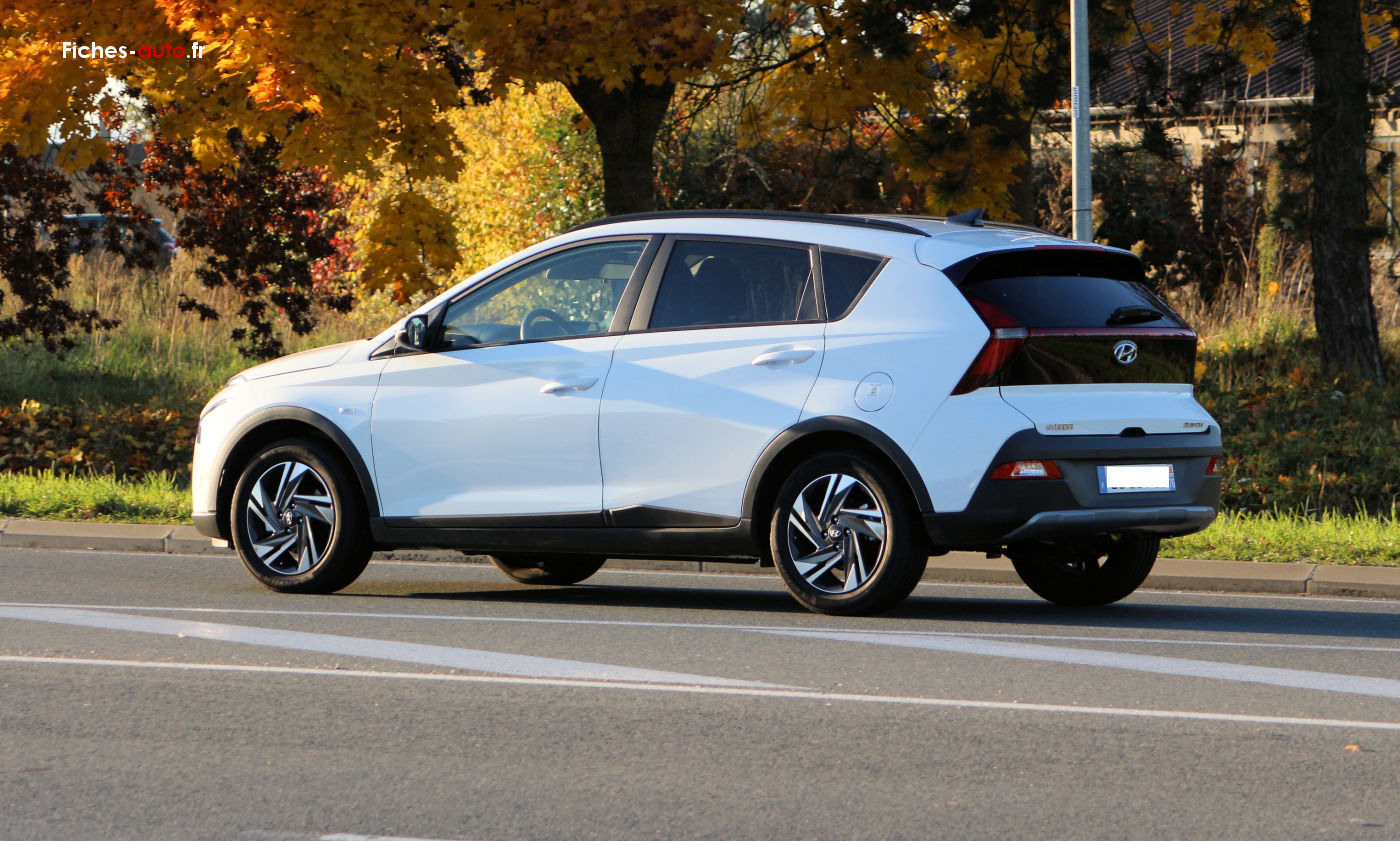 (Source Hyundai mai 2025) A partir de 23 000 euros : Aide au démarrage en côte // Aide au stationnement arrière // Allumage automatique des feux de croisement // Assistance active au suivi de voie // Caméra de recul // Climatisation manuelle // Commandes au volant // Connexion Bluetooth® // Détection de fatigue du conducteur // Enjoliveurs 15'' // Ecran couleur tactile 10,25'' // Feux de jour et feux de position à LED // Feux de route intelligents // Freinage d'urgence autonome avec reconnaissance piétons et cyclistes // Navigation Europe avec programme de mise à jour à distance // Port USB de recharge à l'avant // Reconnaissance des panneaux de limitation de vitesse // Régulateur de vitesse // Rétroviseurs extérieurs électriques et chauffants // Services connectés Bluelink et Hyundai Live // Vitres électriques avant et arrière // Volant et levier de vitesses gainés cuir