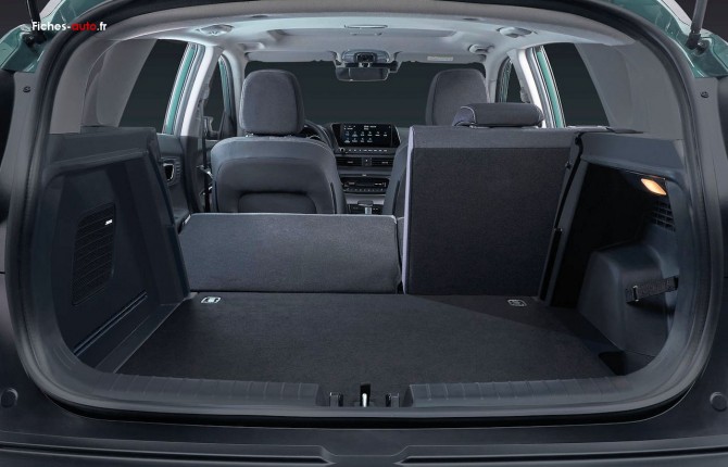 En reposant sur la même base que l'i20, le Bayon offre donc malgré tout un volume limité. Totuefois, si l'i20 propose 352 litres de coffre, le Bayon arrive toutefois à faire grimper cette valeur à 450 litres, le tout en norme VDA (et donc il y a en réalité un peu plus si on compte en norme liquide). Ces 450 litres restent très honnêtes vis à vis de son gabarit et même sans le prendre en compte c'est une valeur qui permet de faire beaucoup de choses.