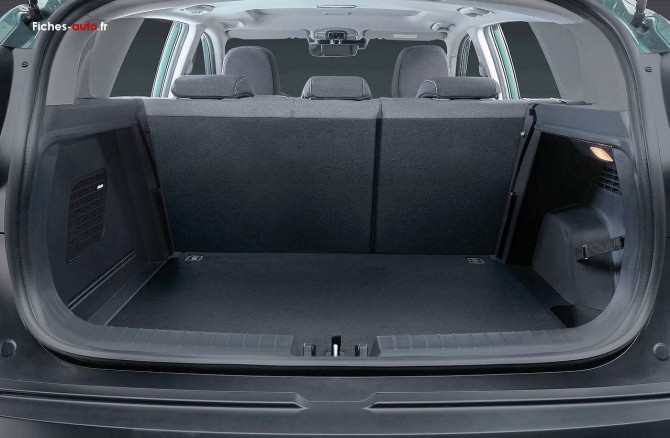 Volume de coffre adapté au quotidien ou weekend, mais insufisant pour les vacances (achat d'un coffre de toit qui a doublé la capacité).