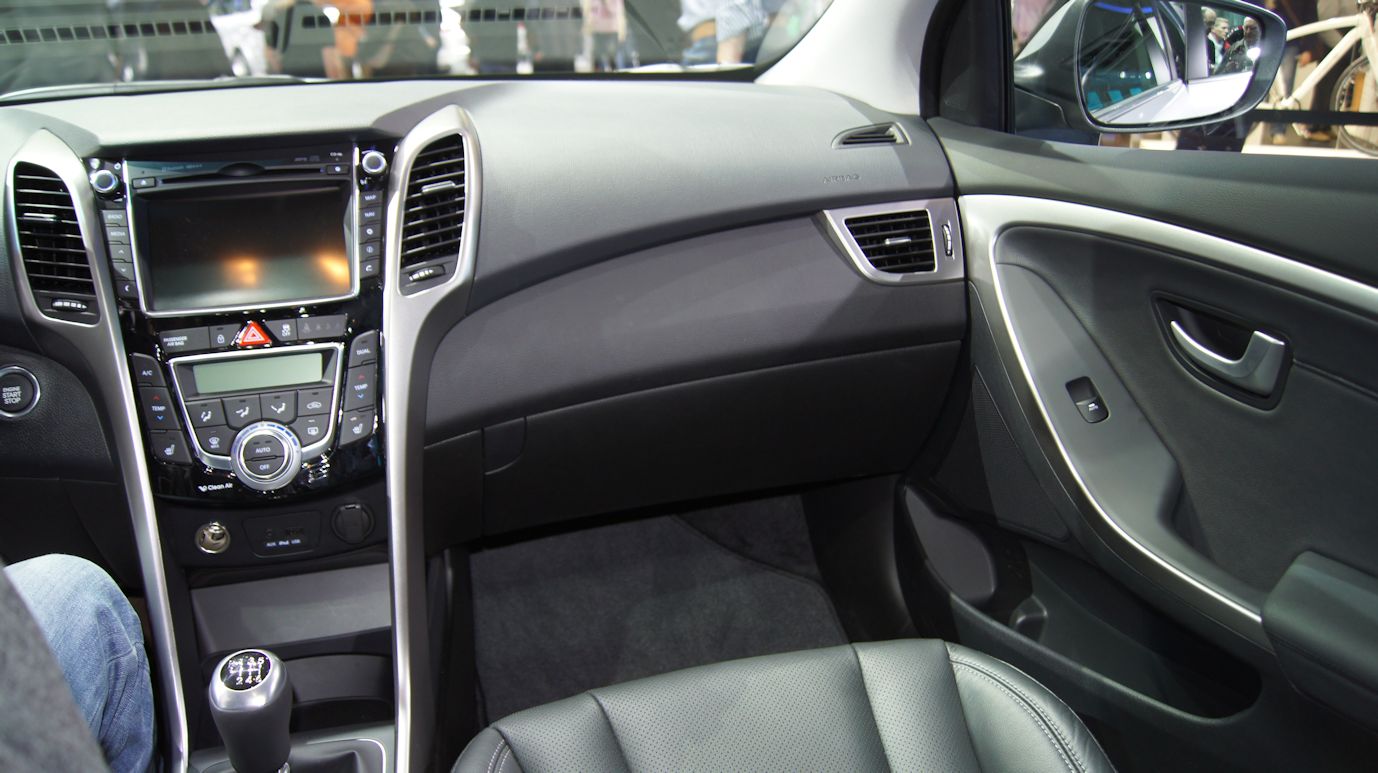 « Dans ton habitacle, moins de vagues tu feras, plus de ventes tu auras... » Cette maxime, loin d'être tirée de la sagesse d'une quelconque philosophie du pays du matin calme, pourrait tout droit sortir d'un traité tout germanique sur le bon agencement de l'intérieur d'une compacte. De fait, Hyundai semble avoir bien retenu la leçon en présentant un habitacle sobre et soigné dans lequel le plus grand nombre peut se retrouver. En analysant d'un peu plus près la présentation, on sent que le public américain est visé. En effet, ce type de disposition se retrouve sur bon nombre d'autos là bas, à savoir cette console centrale verticale avec des aérateurs latéraux en forme d'aile (on se croirait dans une Cadillac, en mois bien fini évidemment !). Je précise car ce marché est très visé par la marque même si ce sont plutôt les i40 qui semblent se vendre mieux (plus grosse, normal). Personnellement, je préfère la présentation de la Cee'd (sa soeur presque jumelle) qui est plus personnelle et plus latine.
