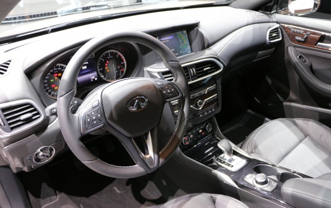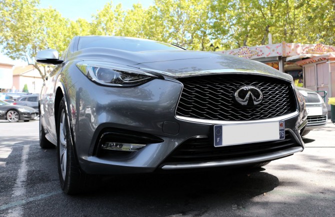 A partir de 26 300 euros : Système Stop/Start, Filtre à particules (FAP) (moteurs Diesel uniquement), Mode Eco (DCT uniquement), Direction assistée variable en fonction de la vitesse, Kit anti-crevaison, Système d’info-divertissement à écran tactile (LCD VGA 7"), Système de commande vocale, Audio Bluetooth® (streaming) avec fonctionnalité d'annuaire téléphonique, Sélecteur de mode de conduite Infiniti (DCT uniquement), Climatisation manuelle, Fenêtres électriques à l’avant et à l’arrière - ouverture/fermeture par une pression, Filet au niveau des pieds du passager avant, Accoudoir central avant, Système audio AM/FM avec lecteur de CD, Système audio 6 haut-parleurs, 2 ports USB avec connectivité smart phone et iPod, Contrôle actif du bruit (ANC – Active Noise , Volant multifonction, Volant et levier de vitesses gainés cuir, Colonne de direction avec réglages manuels en profondeur et en hauteur, Finition tableau de bord simili cuir, Ciel de toit couleur Pebble, Système antiblocage des roues (ABS - Anti-lock Braking System), répartiteur électronique de freinage (EBD - Electronic Brake force Distribution), système antipatinage (TCS - Traction Control System) et contrôle électronique de trajectoire (VDC - Vehicle Dynamic Control), Avertissement anticollision frontale et stop, Système de contrôle de pression des pneus (TPMS - Tyre Pressure Monitoring System) (avertissement), Assistance au démarrage en côte, Assistance au freinage adaptative, Frein de stationnement électronique, Système d’anti-démarrage, Système de verrouillage centralisé, 7 airbags (airbags conducteur et passager avant, airbags latéraux hanche-thorax et airbags rideaux avant et arrière), Gicleurs de lave pare-brise dégivrables., Éclairage de jour LED, Réglage de la hauteur du siège conducteur, Fixations ISOFIX aux places latérales arrière, Banquette arrière rabattable 40/60, Bas de caisse laqués noir, Poignées de porte extérieures ton carrosserie, Passages de roue laqués noir, Becquet arrière avec finitions latérales laquées noir, Finition de fenêtre chrome satinée, Feux arrière LED, Activation automatique des phares, Rétroviseurs extérieurs couleur carrosserie avec rappel de clignotant intégré, Rétroviseurs extérieurs réglables et dégivrables électriquement, Éclairage latéral sur les rétroviseurs extérieurs