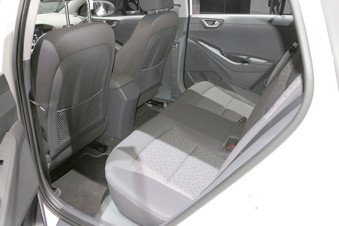 La modularité de la Ioniq reste quelconque mais efficace. La banquette arrière se fractionne en deux parties et non trois, soit 40 / 60. On a un plancher plat avec les versions rechargeable et électrique puisque leur plancher de coffre est plus haut (mais on perd en volume de coffre donc).