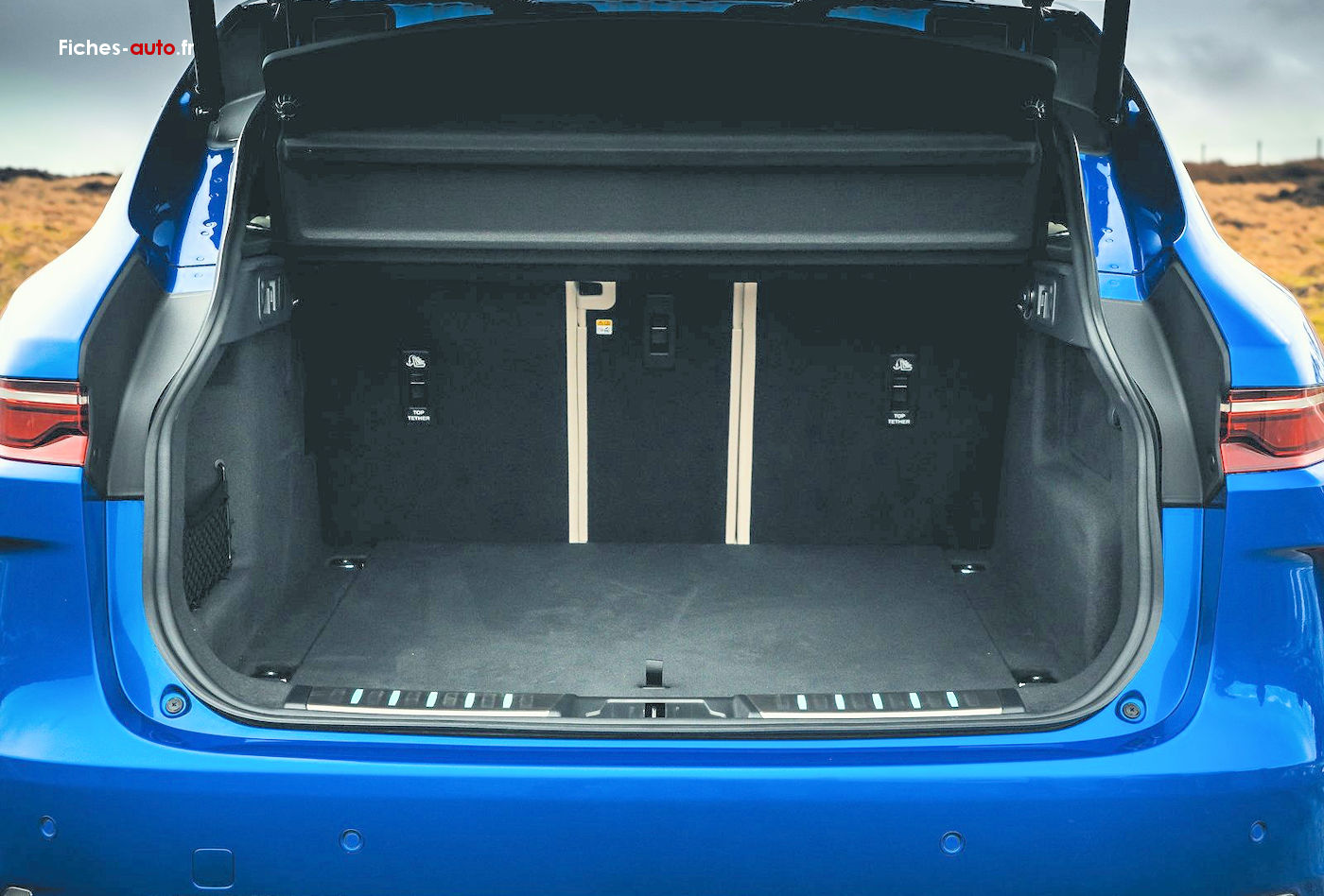 Reposant sur la même plateforme que la Jaguar XE, le F-Pace corrige toutefois en grande partie les petites lacunes de la berline concernant l'espace utile, et ce malgré seulement 3 cm d'empattement en plus et 6 cm de plus en longueur (l'accroissement de la largeur est décisive). Tout d'abord, le coffre est de 613 litres (VDA) en comptant le volume disponible sous le plancher amovible (mais sans compter l'espace disponible au dessus de la plage arrière, car ici ce n'est pas une malle comme sur la XE). Notez que ce dernier (le plancher) est réversible et donc qu'il peut se positionner de deux manières (les côtés pile et face n'ont pas le même revêtement, l'un est plus facilement lavable, pratique pour y mettre les bottes pleines de terre [...] Suite du chapitre de la vie à bord >>