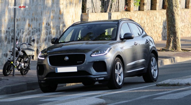 (Source Jaguar Décembre 2018) A partir de 35 900 euros : Ouïes latérales chromées // Cadres des vitres latérales en noir satiné // Rétroviseurs extérieurs chauffants // Essuie-glaces asservis à un détecteur de pluie // Pas de sortie d'échappement apparente 1 // Spoiler de hayon // Lunette arrière chauffante // Phares à LED // Feux arrière à LED // Feux antibrouillard arrière // Phares automatiques // Triple indicateur de changement de voie // JANTES ET PNEUS // Jantes en alliage 17" à 10 branches « Style 1005 » // Kit anticrevaison // Système de contrôle de pression des // pneumatiques TPMS // Climatisation automatique 2 zones // Coffret de rangement de la console centrale // Porte gobelets couverts dans la console centrale avant // Console centrale avec accoudoir // Pare-soleil avec miroirs de courtoisie éclairés // Ouïes d'aération de deuxième rangée // Plafonnier sur console // Lumière d'ambiance // Sièges en tissu // Sièges avant à réglages manuels 8 directions // Volant cuir multifonction // Garniture de pavillon Morzine couleur Light // Oyster // Seuils de portes avant en métal avec inscription JAGUAR // Sièges arrière rabattables séparément 60/40 // Contrôle de progression toutes surfaces 2 (ASPC) // Suspension passive // Efficient driveline // Aide au démarrage en côte // JaguarDrive Control // Direction à assistance électrique (EPAS) // Guidage de couple par freinage (Torque // Vectoring) 3 (TVbB) // Contrôle dynamique de la stabilité et antipatinage // Frein de stationnement électronique (EPB) // Démarrage sur route à faible adhérence 2 // Stop/Start // Système de démarrage sans clé // Écran tactile Touch de 10" // Ordinateur de bord avec écran 5'' (standard) // Remote // Système audio Jaguar - 125 W // Radio AM/FM // Réglage dynamique du volume // Connectivité Bluetooth® // Prises électriques – 4 prises 12 V et 2 prises // USB données et recharge // Assistant de conduite en mode ECO // Ordinateur de bord // Freinage d'urgence // Régulateur de vitesse et limiteur de vitesse // Détection de somnolence du conducteur // Assistant de maintien de file // Aide au stationnement avant et arrière // Caméra arrière // Système de freinage anti-blocage (ABS) // Système d'airbag pour piétons // Répartiteur électronique de freinage (EBD) // Aide au freinage d'urgence (EBA) // Airbags avant, avec détection de présence du passager // Airbags latéraux avant // Airbags de type rideau intégral // Alarme périmétrique et anti-démarrage // Verrouillage automatique configurable par le client // Fixations ISOFIX à l'arrière // Vérouillage de sécurité enfants à commande électrique // Rappel de ceinture de sécurité // Appuie-tête avant passifs // Couvre-bagages de l'espace de chargement // Sangle latérale élastique du coffre // Éclairage de l'espace de chargement // Crochets dans l'espace de chargement // Filet de rangement du coffre // Hayon à ouverture manuelle
