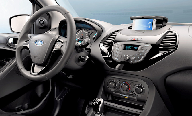 A bord de la Ka+ on n'est pas vraiment dépaysé, on retrouve une présentation "à la Ford" qu'on connaît bien sur les Fiesta 6, Ecosport ou encore B-max. C'est sans chichi mais pas non plus désuet comme on peut le voir dans une Sandero.