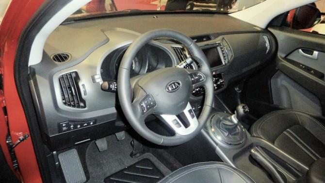 La version Kia Sportage Premium n'est disponible qu'en motorisation diesel : 1.7 CRDi 2WD et 2.0 CRDi BVA6 4WD. Un autoradio avec lecteur CD, système de connexion USB et câble de connexion iPod est de série sur cette finition. Il y a aussi un accoudoir central avec une boîte de rangement, des sièges chauffants à l'avant et à l'arrière. Pour plus de confort, un réglage lombaire est disponible sur le siège du conducteur. Les feux avant sont de série avec technologie LED intégrée grâce à des diodes. Le pommeau de levier de vitesse et le volant sont gainés en cuir.