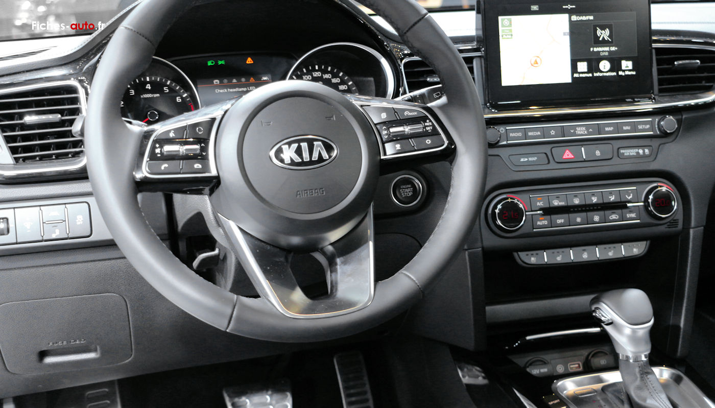 (Source Kia Octobre 2019. Modèle Ceed compacte. Ajoutez 1000 euros pour la ProCeed) De 21 090 à 24 990 euros : Airbags frontaux, latéraux et rideaux // Système de freinage d'urgence autonome // Alerte de franchissement involontaire de ligne // Aide au maintien dans la file // Alerte de vigilance du conducteur // Système de gestion intelligente des feux de route // Allumage automatique des projecteurs en fonction de la // luminosité // Feux de jour avant à LED // Jantes en acier 16" avec enjoliveurs // Coques de rétroviseurs couleur carrosserie // Sellerie tissu noir // Siège conducteur réglable en hauteur // Volant et pommeau de levier de vitesses gainés cuir // Ecran tactile 8’’ avec compatibilité Android AutoTM et Apple CarPlayTM // Système de téléphonie mains-libres Bluetooth® avec reconnaissance vocale et streaming audio // Caméra de recul avec lignes de guidage dynamiques // Climatisation manuelle // Système audio Radio/MP3 6HP avec commandes au volant // Régulateur/limiteur de vitesse // Console centrale avec accoudoir // Rétroviseurs extérieurs électriques et chauffants // Lève-vitre avant, séquentiel côté conducteur, et arrière électriques // Connectique USB à l’avant