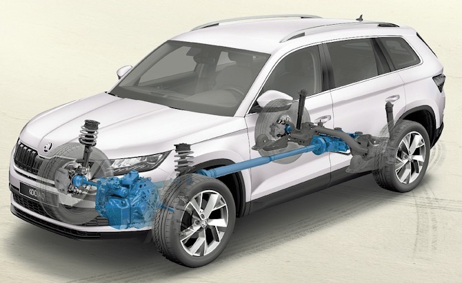 Avec une garde au sol de près de 19 cm, le Kodiaq a déjà un argument qui est en sa faveur même si ce n'est pas non plus. Son système 4 roues motrices est ici le même que le 4Motion appartenant au groupe Volkswagen. Il se révèle honorable pour celui qui ne fait pas du tout terrain son quotidien. En effet, le système 4X4 pour traction du groupe (appelé Quattro ou 4Motion) est ici plus rudimentaire que sur les versions plus haut de gamme à moteur longitudinal qui s'équipent de systèmes Torsen (un Quattro n'en équivaut pas un autre ...).