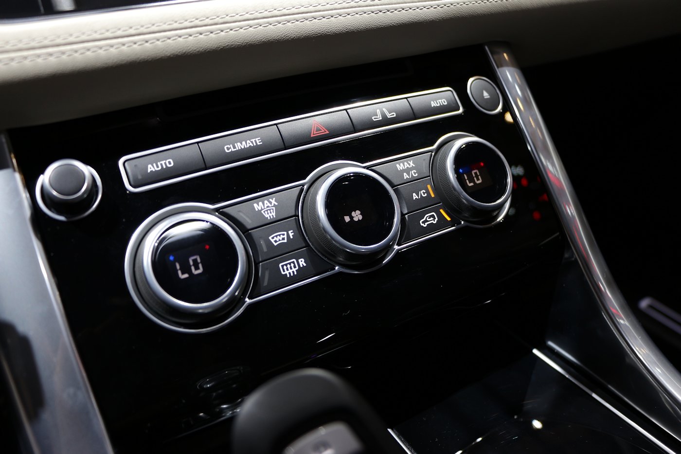 A bord, il faut avouer que les différences avec le "grand" Range Rover sont difficiles à percevoir pour un néophyte, ce qui est au passage un sacré compliment ! Les lignes sont ici très pures et les matériaux employés sont les plus nobles possibles. Le plastique semble avoir été utilisé au minimum. Toutefois tout n'est pas parfait, je note par exemple un combiné de lève vitre assez cheap que même une Renault pourrait s'en équiper ... C'est d'ailleurs le même sur l'ensemble des Land Rover Jaguar (allant du Discovery sport au gros Range Rover en passant par la Jaguar XE). Franchement, il est étonnant de voir cela à bord de cet engin de luxe.