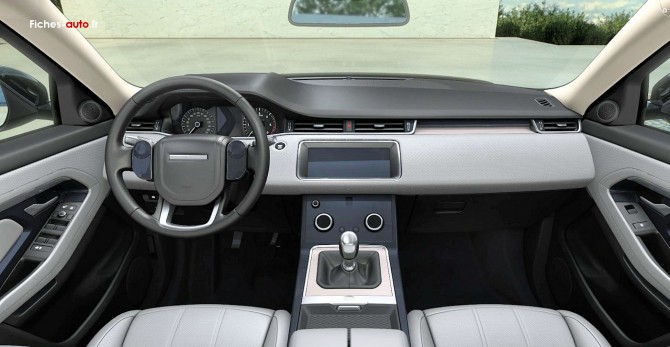 (Source Land Rover Octobre 2019) De 39 750 à 57 400 euros : Poignées de porte déployables affleurantes // Phares à LED // Phares automatiques // Essuie-glaces avant automatiques // Jantes 17" Style 1005 à 10 branches // Système de contrôle de pression des pneumatiques TPMS // Kit anticrevaison // Double accoudoir central avant coulissant // Lumière d'ambiance // Climatisation automatique 2 zones // Système de démarrage sans clé // Sièges en tissu Fabric // Sièges avant à réglages manuels 8 directions // Sièges arrière rabattables 40:20:40 // Système Efficient Driveline2 // Système Active Driveline3 // Terrain Response 24 // Contrôle de progression en tout-terrain (ATPC) // Démarrage sur route à faible adhérence // Contrôle de vitesse en descente (HDC) // Commande vectorielle de couple par freinage (Torque Vectoring by braking) // Suspension passive // Aide au démarrage en côte // Direction à assistance électrique (EPAS) // Contrôle dynamique de stabilité (DSC) // Antipatinage électronique (ETC) // Écran tactile Touch Pro de 10" // Cadrans analogiques avec affichage TFT central 5 pouces // Caméra de recul // Détecteurs d'obstacles avant et arrière // Assistant de maintien de file // Régulateur de vitesse et limiteur de vitesse // Contrôle de la vigilance du conducteur // Freinage d'urgence // Fixations ISOFIX à l'arrière // Verrouillage de sécurité enfants à commande électrique // Secure Tracker