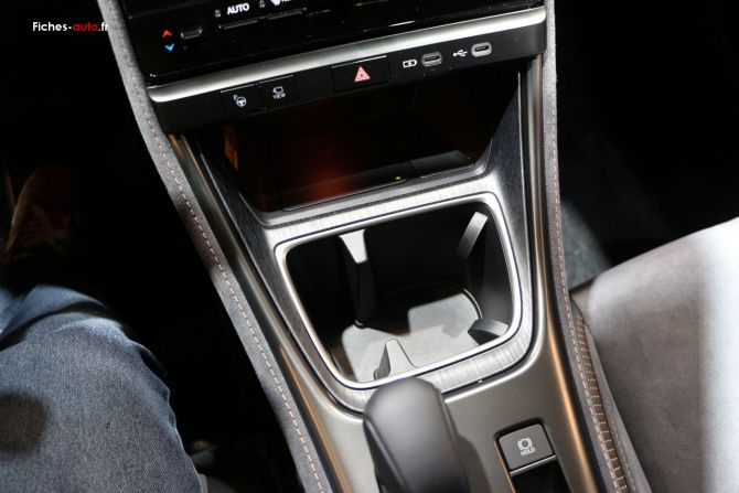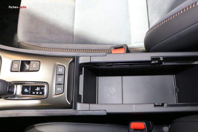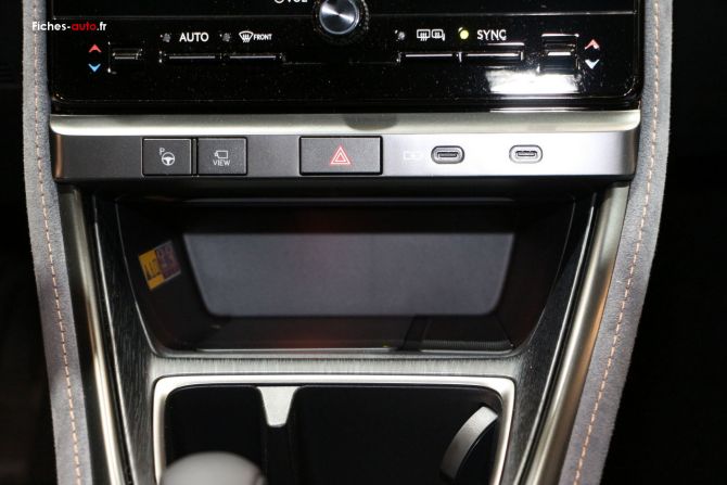 Côté rangements, le LBX se montre plutôt bien pensé. On trouve sous lécran central un logement bien pratique pour poser téléphone (charge à induction sur les finitions plus hautes, à partir de Emotion) ou petits objets. Un porte-gobelet unique prend place juste derrière, puis un accoudoir central assez généreux, le seul espace vraiment confidentiel pour y ranger des effets personnels à labri des regards. Enfin, sous la console centrale flottante, un large compartiment accueille sacs ou bouteilles. Lensemble est fonctionnel, mais on aurait aimé davantage de rangements fermés pour un véhicule de ce niveau de gamme.