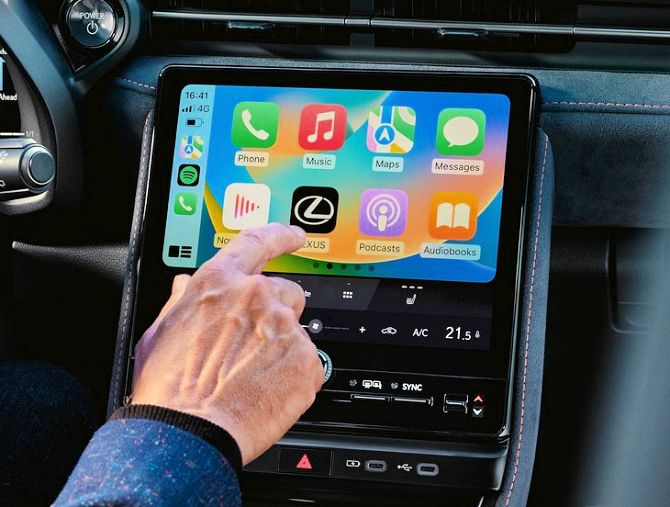 Le système Lexus Link Connect repose sur un écran tactile de 9,8 pouces, bien positionné et facile à atteindre. Il donne accès à la navigation, à la gestion de la climatisation et aux services connectés Lexus Link+. Ce dernier inclut la navigation connectée au Cloud (gratuite pendant 4 ans), la télématique à distance (verrouillage, chauffage, niveau de batterie 12 V) et un coach de conduite hybride. Linterface est claire mais un peu sobre pour un modèle premium, et certaines animations manquent de fluidité. En revanche, lintégration dApple CarPlay et dAndroid Auto sans fil relève le niveau, tout comme la compatibilité avec la clé numérique Lexus Link+, qui permet de déverrouiller ou démarrer le véhicule avec son smartphone.