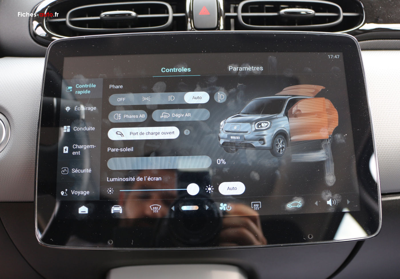 A partir de 15 500 euros : Maintien automatique en pente // EPB // Siège arrière ISOFIX // Sécurité enfants pour les portes arrière // Monitoring des pressions des pneus // Capteur de collision latérale // Ecall (Appel de secours) // Enregistreur de données d'urgence // Kits de réparation de pneus // Ceinture de sécurité // Ceintures de sécurité avant à prétendeurs 3 points // Ceintures de sécurité arrière à verrouillage d'urgence à 3 points // Rappel de ceinture de sécurité avant et arrière // Coussin gonflable // Airbags frontaux pour conducteur et passager // Airbags latéraux pour conducteur et passager // Airbags rideaux latéraux pour conducteur et passager // Désactivation d'airbag latéral passager // Pilote LEAP // CCS (Système de contrôle de croisière) // ACC (Régulateur de vitesse adaptatif) // FCW (Avertissement de collision frontale) // AEB (Freinage d'urgence autonome) // LDW (Avertissement de sortie de voie) // ISA (Assistance à la vitesse intelligente) // BSD (Détection des angles morts) // DOW (Avertissement d'ouverture de porte) // LKA (Assistance au maintien de voie) // LCA (Alerte de changement de voie) // DDAW (Avertissement de somnolence et d'attention du conducteur) // ADDW (Avertissement avancé de distraction du conducteur) // Feux diurnés à LED // Phares halogènes // Allumage automatiques des phares // Réglage manuel de la hauteur des phares // Double feux antibrouillard et double feu de recul // Feu stop LED et feu de position surélevé // Capteurs de stationnement arrière // Caméra de recul avec guidage directives dynamiques // Antenne intégrée au pare-brise arrière // Essuie-glaces sans cadre // Pare-brise arrière chauffé // 4 vitres électriques avec une seule touche et anti-pincement // Fermeture centralisée // Rétroviseurs extérieurs // Réglage électrique // Chauffé // La télécommande // Démarrage sans clé // Régénération de batterie en freinage // 3 modes de conduite // 3 modes de volant // Levier de vitesses à colonne // Réglage volant 2 directions // Volant multifonction // Toit panoramique avec rideau électrique // Poignées de porte chromées // Poignées de maintien du plafonier // Rétroviseur intérieur antiéblouissant manuel // Lampe de lecture avant // Lampe de coffre // Sièges en tissu // Sièges avant intégrés // Siège conducteur avec réglage manuel en 6 directions // Siège passager avant avec réglage manuel en 4 directions // Sièges arrière avec appuie-têtes // Coffre de rangement console centrale // Pare-soleil avec miroirs // Boite à gants // Porte-gobelet // Alimentation 12V // 2 ports USB // Climatisation électrique monozone // Tableau de bord LCD 8" // Écran tactile central de 10,1" // DAB+FM // Navigation connectée // Bluetooth // Musique en ligne (Amazon Music) // Commande vocale // 4 haut-parleurs // Wifi embarqué // Mise à jour sans fils OTA (Over the air) // Informations du véhicule // Contrôle du véhicule à distance // Clé Bluetooth // Programmer la recharge // Localisation du véhicule // Câble de recharge type 2, mode 2 // Câble de recharge de type 2, mode 3