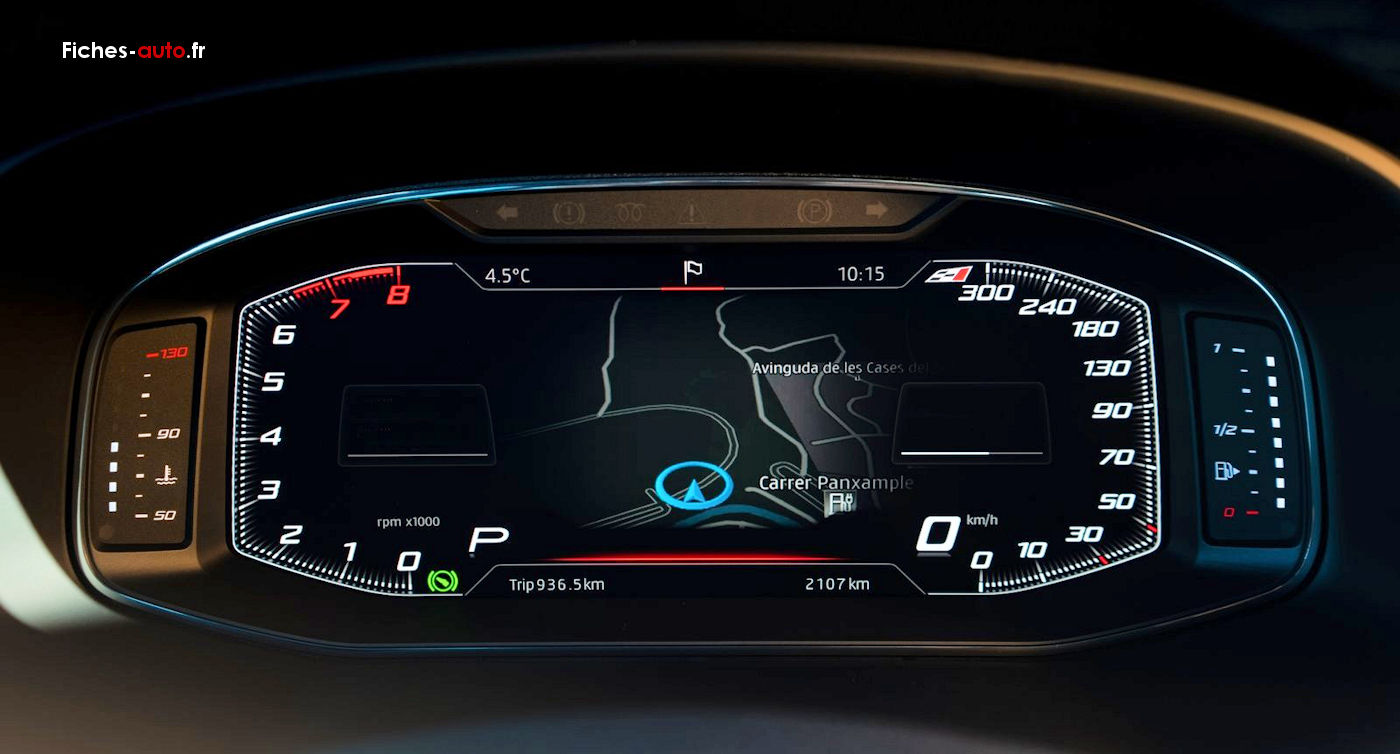 C'est surtout la phase 3 en 2018 qui a conféré à la Leon 3 de quoi rester viable quelques années grâce à l'adoption (en option, pas de série) de l'écran en lieu et place des compteurs, à savoir un cockpit virtuel de 10.25 pouces dont la résolution est gratifiante.