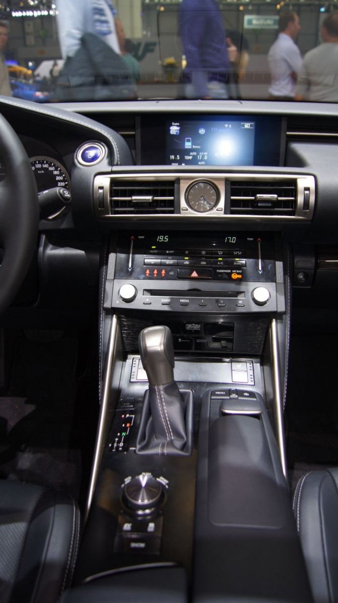 (Source Lexus) Assistance au démarrage en côte (HAC), Feux de stop actifs, Gestion intégrée de la dynamique du véhicule (VDIM), Mode EV (100% électrique) (sur IS 300h), Sélecteur de mode de conduite (ECO / NORMAL / SPORT), Système de surveillance de la pression, Systèmes de freinage, stabilité, direction et motricité1 (ABS / BAS / EBD / ECB (sur 250) / ECB-R (sur 300h) / EPS / TRC / VSC), 8 airbags, Bouton de désactivation de l’airbag passager avant, Capot surélevable (Pop Up Hood), Points d’ancrage ISOFIX (places latérales arrière), Prétensionneurs de ceintures de sécurité (places avant et latérales arrière), Feux avant diurnes, feux arrière et feux de brouillard avant et arrière à diodes électroluminescentes (DEL), Jantes en alliage 16" à 5 branches avec pneumatiques 205/55 R16, Kit de réparation de pneu (sur IS 300h), Projecteurs Xénon à haute intensité (HID), Roue de secours temporaire (sur IS 250), Vitres anti-UV et à isolation thermique, Vitres latérales avant recouvertes d’un revêtement hydrophobe, Double verrouillage des portières, Système antivol avec antidémarrage / capteur d’intrusion / alarme sonore, Écran couleur multi-information 4,2 pouces entre le compteur et le compte-tours, Horloge analogique avec éclairage à diodes électroluminescentes (DEL), Caméra de recul, Commandes au volant (audio / affichage / téléphone / reconnaissance vocale), Connectivité audio et téléphonie mobile Bluetooth®, Illumination double des cadrans (Bleue / Rouge), Instrumentation Optitron, Système Multimédia Lexus ( écran 7" à commande par molette rotative, lecteur simple CD, système audio à 6 haut-parleurs avec logiciel Gracenote®, tuner AM/FM et antenne intégrée dans la lunette arrière, prise AUX et double port USB), Accoudoir central arrière, Accoudoir central avant avec espace de rangement, Banquette arrière rabattable 60:40, Démarrage sans clé (Smart Start), Climatisation à commande électronique (1 zone / filtre à air avec mode d’extraction active du pollen, commande électrostatique tactile pour le réglage de la température), Éclairage d’ambiance dans l’habitacle avec diodes, électroluminescentes (DEL), Inserts noirs laqués, Lève-vitres électriques avant et arrière à impulsion, Pommeau de levier de vitesses gainé de cuir, Prise de courant 12 V, Régulateur de vitesse, Rétroviseur intérieur à réglage jour/nuit manuel, Sellerie en tissu / simili-cuir Tahara, Sièges avant réglables manuellement (longitudinal / hauteur d’assise / inclinaison du dossier pour le conducteur et le passager), Système de contrôle actif du son (Active Sound Control) (sur IS 300h), Système d’éclairage d’accueil, Volant à 3 branches gainé de cuir et réglable manuellement en hauteur et en profondeur.