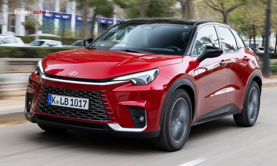 (Source Lexus 2024) A partir de 35 300 euros :Antenne type aileron de requin // Calandre trapézoïdale avec garniture argentée // Capteur d'obscurité // Clignotants avant LED // Coques de rétroviseurs extérieurs noirs // Essuie-glaces à détecteur de pluie // Feux antibrouillard arrière LED // Feux avant LED simple lentille avec réglage manuel de la hauteur du faisceau et feux automatiques (AHB) // Feux de jour (DRL) à LED // Moulures de portières noires // Pare-chocs arrière avec échappement dissimulé // Pare-chocs avant et arrière avec garniture argentée // Peinture métallisée (option) // Rétroviseurs extérieurs rabattables électriquement // Rétroviseurs extérieurs réglables électriquement et chauffants // Vitrage anti-UV et isolant // Vitres latérales arrière et lunette arrière surteintées // Jantes alliage 17 pouces gris foncé avec pneus 225/60 R17 // Lexus Safety System +3 (assistance à la conduite proactive, lecture automatique des panneaux, régulateur adaptatif DRCC, maintien dans la voie LTA, PCS, ESA, EDSS) // Assistance au démarrage en côte (HAC) // Avertisseur sonore piéton (AVAS) // Feux de détresse automatiques // Feux stop actifs // Mode EV (100 % électrique) // Sélecteur de mode de conduite Eco/Normal // Système de contrôle de la pression des pneus (TPWS) avec localisation // ABS / BAS / EBD / ECB-R / EPB / EPS / TRC / VSC // Airbags conducteur et passager avant // Airbag central avant // Airbag genoux conducteur // Airbags latéraux et rideaux // Bouton de désactivation de l’airbag passager // Rappel sonore ceinture avant et arrière // Prétensionneurs de ceintures avant et arrière // Fixations Isofix sièges arrière // Système antivol avec alarme, capteur d’inclinaison et d’intrusion // Verrouillage automatique des portières // Verrouillage à distance // Combiné d’instrumentation couleur 7 pouces // Système multimédia Lexus Link Connect avec écran tactile 9,8 pouces // 4 ports USB (2 avant, 2 arrière) // Commandes au volant // Prises 12V avant et coffre // Radio numérique DAB // Système audio à 6 haut-parleurs // Système d’appel d’urgence eCall // Appuie-tête arrière réglables // Appuie-tête avant réglables // Dossiers arrière rabattables 60/40 // Sièges avant chauffants // Sellerie en tissu // Siège conducteur à 6 réglages manuels // Siège passager à 4 réglages manuels // Climatisation automatique bi-zone avec contrôle à distance et purificateur d’air // Couvre-coffre rabattable // Kit de réparation de pneus // Palettes de changement de vitesse au volant // Tableau de bord garni de tissu // Volant 3 branches en cuir.