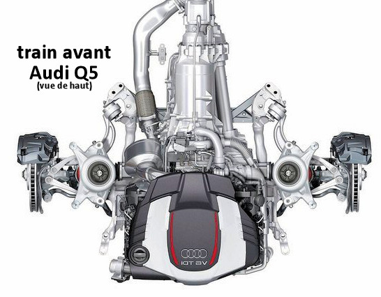 Vous en avez peut-être eu vent, et même certainement, le Macan se base sur la plateforme du Q5. C'est donc la plateforme MLB qu'exploite ce Porsche, un châssis déjà utilisé sur l'Audi A4 de 2007 par exemple. Il s'agit donc d'une structure à moteur longitudinale contrairement à la MQB qui incarne les véhicules à plus bas coût du groupe Volkswagen (ex : A3, Golf, Passat ..). Et même si Porsche explique que 70% de la structure est nouvelle, il y a forcément une grande filiation à faire entre ces deux modèles puisque l'empattement reste par exemple identique ... Les proportions sont toutefois un peu différentes avec un avantage pour la Macan : il est plus bas et plus long (avec des voies élargies), ce qui optimise la position de son centre de gravité. Sans oublier les cales qui permettent d'élargir un peu les voies.