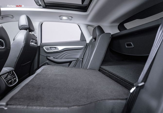 Concernant la modularité on est sur quelque chose de convaincant avec un plancher plat une fois la banquette rabattue (qui se fractionne en deux 60/40, ce qui aurait pu être encore amélioré avec du 40/20/40 mais c'est finalement très rare sur le marché, on ne va donc pas trop insister là-dessus).