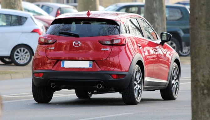 Ici, il s'agit grosso modo d'une Mazda 2 haute sur pattes qui aurait bénéficié de trains roulants plus généreux. En effet, les jantes et pneumatiques sont d'un calibre réellement supérieur (jusqu'à 16 pouces sur la 2 et 18 pouces sur le CX-3, sachant que la largeur est aussi bien supérieure). De [...] Lire la suite >>