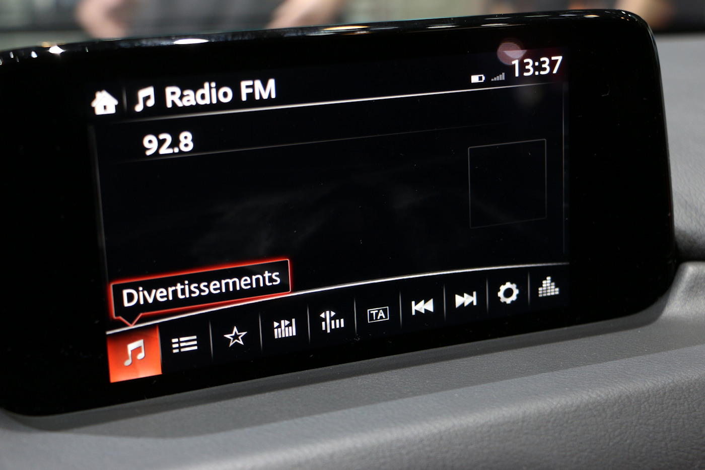 A partir de 29 500 euros : Contrôle dynamique de stabilité (DSC) // Antipatinage électronique (TCS) // Système d’antiblocage des roues au freinage (ABS) // Répartiteur électronique de freinage (EBD) // Aide au freinage d’urgence (EBA) // Aide au freinage intelligent en mode urbain (SCBS) // Système de signalisation d’arrêt d’urgence (ESS) // Airbags frontaux et latéraux (conducteur et passager avant) // Airbags rideaux avant et arrière // Système d’antidémarrage // Système de surveillance de pression des pneus (TPMS) // Phares antibrouillard // Clignotants LED intégrés aux rétroviseurs extérieurs // Kit de réparation anti-crevaison // Jantes alliage 17’’ // Vitres arrière et lunette arrière surteintées // Décoration de planche de bord «Gris mat brossé» // Antenne type «requin» // Radio AM/FM et lecteur CD/MP3 + 6 HP // Prise «jack» auxiliaire + 2 ports USB // Ordinateur de bord avec alarme de vitesse // Commandes audio au volant // Système Bluetooth® avec commandes au volant // Système MZD Connect avec écran couleur 7’’, interface à commandes // Sellerie tissu noir // Climatisation automatique bi-zone // Régulateur et limiteur de vitesse réglable // Essuie-glaces avant automatiques à détecteur de pluie // Allumage automatique des feux // Fonction «Coming/Leaving Home» // Pare-soleil avec miroir de courtoisie et lumière côtés conducteur et passager + rangement côté conducteur // Lève-vitres électriques avant et arrière, avec commande à impulsion pour chaque vitre // Démarrage avec bouton «start» // Assistance au démarrage en côte (HLA) // Ouverture/fermeture des portes à télécommande // Rétroviseurs extérieurs chauffants, couleur carrosserie, réglables et rabattables électriquement // Sièges conducteur et passager avant avec réglage manuel de la longueur, hauteur et inclinaison // Siège conducteur avec réglage manuel des supports lombaires // Sièges arrière rabattables 40/20/40 // Sièges arrière avec accoudoir central contenant 2 porte-gobelets // Volant réglable en hauteur et profondeur // Volant et pommeau de levier de vitesses gainés de cuir // Frein à main électrique // Rétroviseur intérieur photochromatique // Cache-bagages «Karakuri» // Système d’arrêt et redémarrage automatique du moteur i-stop