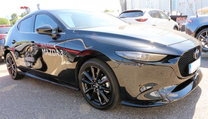 A partir de 29100 euros : Style + Vitres et lunette arrière surteintées // Montants de portes extérieurs « Piano Black » // Signature lumineuse spécifique à l’avant et à l’arrière à LED // Jantes alliage 18” « Black » (uniquement sur 2.0L Skyactiv-X) // Canules d’échappement plus larges (90 mm) (uniquement sur 2.0L Skyactiv-X) // Rétroviseur intérieur sans cadre // Palettes de changement de vitesses au volant (uniquement avec boîte de vitesses automatique) // Volant avec cerclage chromé // Bouton « Start » avec cerclage chromé // Poignée de boîte à gants chromée // Système audio Bose® avec 12 haut-parleurs // Phares à LED adaptatifs (ALH)