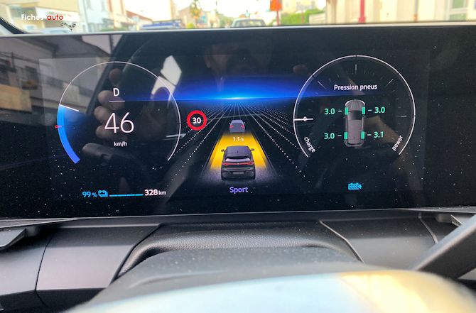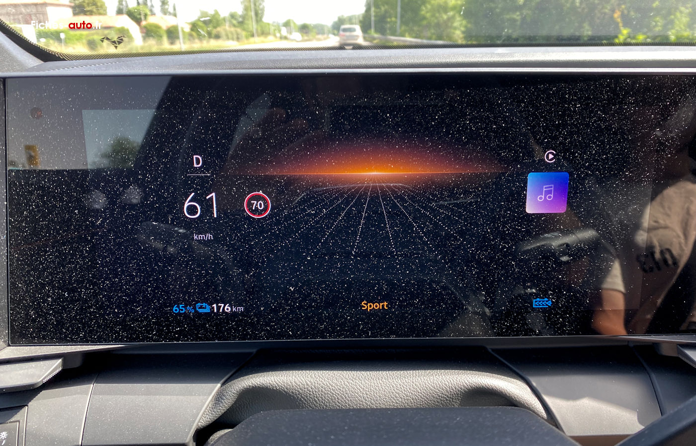 Au niveau matériel (hardware), on profite de série du combiné numérique (derrière le volant) de 12 pouces alors que l'écran central n'est que de 9 pouces. Il faut grimper sur la finition Techno (la deuxième) pour profiter du deuxième écran de 12 pouces, positionné en mode portrait (vertical).