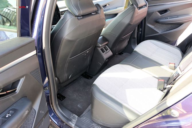 Pour l'habitabilité c'est toutefois un peu plus nuancé, car si la longueur aux jambes est similaire à celle d'une Mégane thermique (et donc plutôt correcte), la largeur de banquette est ici bien moindre. On accueillera donc deux adultes assez confortablement, mais à partir de trois ils seront collés les uns aux autres. On a toutefois une assise qui n'induit pas d'avoir les genoux au niveau de son menton, un défaut qu'on retrouve pourtant sur pas mal d'électriques.