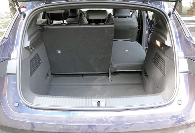 Commençons par le coffre qui avec ses 440 litres surpasse celui de la thermique, avec toutefois une forme et une accessibilité qui restent très perfectibles (il faut lever haut les objets pour les charger et ils finissent tout au fond d'un coffre qui n'est pas doté d'un plancher amovible, qui relèverait justement le seuil du plancher un peu plus haut). Ce petit défaut se répercute aussi sur la modularité puisque vous ne pourrez pas profiter d'un plancher plat quand le dossier arrière sera rabattu, avec à la clé une belle marche.