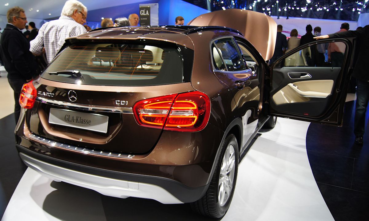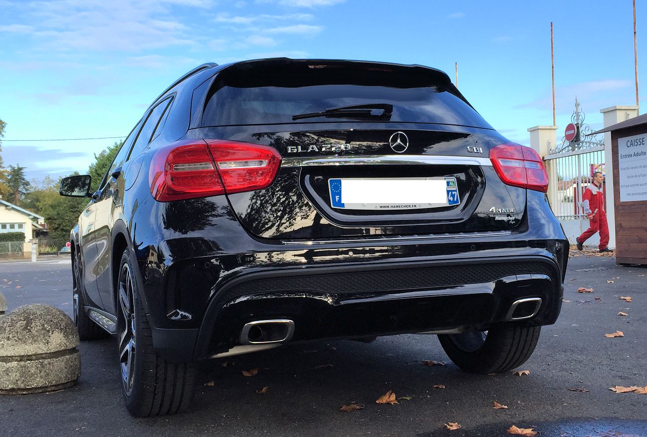 (Source Mercedes Janvier 2017) A partir de 29 700 euros : ABS (antiblocage de roues) et ASR (antipatinage) // ADAPTIVE BRAKE avec fonction HOLD et aide au démarrage en côte // Airbag genoux côté conducteur // Airbags bassin intégrés aux sièges conducteur et passager avant // Airbags frontaux à plusieurs seuils de déclenchement pour le conducteur et le passager avant // Airbags latéraux et airbags rideaux // Allumage automatique des projecteurs // ATTENTION ASSIST : système de détection de somnolence // BAS (freinage d'urgence assisté) // Capot moteur actif // Ceintures de sécurité à 3 points à toutes les places // Contrôle de la pression des 4 pneus et alerte conducteur dans le combiné d'instruments // Désactivation automatique de l'airbag passager // Éclairage de secours en cas d'accident // ESP (régulation de comportement dynamique) // Feux arrière antibrouillard // Feux stop adaptatifs // Filtre à particules (sur moteurs diesel) // Freinage d'urgence assisté actif // Indicateur dynamique de maintenance (ASSYST PLUS) // ISOFIX : fixations des sièges enfants arrières (places extérieures) // Kit anti-crevaison TIREFIT // Pack Off-Road (uniquement sur motorisations 4MATIC) : Programme de conduite Off-Road, limiteur de vitesse en descente (DSR), fonction d'éclairage Off-Road, informations et animations spécifiques sur l'écran central // Rétroviseurs extérieurs électriques chauffants et asphériques avec rappels de clignotant intégrés // Sécurité enfant avec verrouillage manuel des portes arrière et électrique des vitres arrière // TEMPOMAT (régulateur de vitesse) avec limiteur de vitesse // Transmission intégrale permanente (uniquement en liaison avec les motorisations 4MATIC) // Accoudoir avant avec vide-poches // Audio 20 CD avec prééquipement pour Garmin® MAP PILOT avec accès Internet, écran média 7", autoradio, double tuner et lecteur CD // Banquette arrière rabattable 2/3-1/3 // Boîte à gants éclairée // Boîte de vitesses mécanique à 6 rapports avec affichage du rapport préconisé (sur GLA 200, GLA 250, GLA 180 d et GLA 200 d) // Boîte de vitesses automatique à double embrayage 7 rapports 7G-DCT avec palettes de commandes au volant (sur GLA 250 4MATIC, GLA 200 d 4MATIC, GLA 220 d et GLA 220 d 4MATIC) // Clignotant avec commande confort par impulsions // Climatisation THERMATIC avec réglage manuel de la température et de la distribution d'air // Colonne de direction réglable mécaniquement en hauteur et en profondeur // Connexion Bluetooth pour téléphone portable et clavier numérique intégré // Détecteur de pluie // Direction paramétrique asservie à la vitesse // DYNAMIC SELECT : choix entre 4 modes de conduite (Confort, Sport, Eco ou Personnalisé) agissant sur le moteur, la boîte de vitesses (en liaison avec la boîte de vitesses automatique), la suspension et la direction // Fonction d'arrêt/redémarrage "Stop/Start ECO" avec commutateur de désactivation manuelle // Frein de stationnement électrique // Indicateur de température extérieure // Interface Média USB dans l'accoudoir central avant // Lève-vitres électriques (x4) à commande séquentielle et dispositif anti-pincement // Mercedes me connect* : Système d'appel d'urgence Mercedes-Benz, gestion de la maintenance, assistance en cas de panne, télédiagnostic, assistance en cas d'accident // Ordinateur de bord // Pack d'éclairage intérieur : éclairage d'ambiance dans l'habitacle, miroirs de courtoisie éclairés, baguettes de seuil éclairées, liseuses pour passagers avant et arrière, éclairage du plancher avant et arrière du compartiment de chargement et des rétroviseurs extérieurs // Siège conducteur réglable manuellement en hauteur // Sièges avant confort avec réglages manuels // Train de roulement confort Offroad : relève la carrosserie de 30 mm // Verrouillage centralisé à télécommande avec fonction verrouillage automatique désactivable // Volant multifonctions à 12 touches // Baguette de ligne de ceinture noir mat // Rails de toit en noir brillant // Ciel de pavillon gris // Clé design chromée // Combiné d'instruments couleur // Garnitures intérieures en tissu Coari // Grille de calandre à 2 lamelles // Habillage des passages de roues en plastique noir grainé // Inserts décoratifs structure carbone // Jantes alliage 43 cm (17") design multibranches peintes en argent Vanadium avec pneus 215/60 R17 (code 08R) // Pare-chocs peints couleur carrosserie // Protection anti-encastrement // Rétroviseurs et poignées de porte peints dans le ton carrosserie // Tapis de sol en velours // Volant 3 branches gainé de cuir