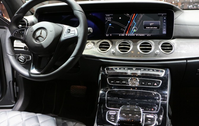 A partir de 45 500 euros : ACTIVE BRAKE ASSIST : système de prévention des risques de collision avec freinage d'urgence assisté // ADAPTIVE BRAKE avec fonction d'aide au démarrage en côte // Airbag genoux pour conducteur // Airbags frontaux et latéraux pour conducteur et passager avant // Airbags pour les vitres avant et arrière // ATTENTION ASSIST : système de détection de somnolence // Capot moteur actif pour la protection des piétons // Contrôle de pression des pneumatiques // TEMPOMAT (régulateur de vitesse) et SPEEDTRONIC (limiteur de vitesse) // Détection d'occupation des sièges et du port de la ceinture de sécurité // Feux stop adaptatifs // Kit anti-crevaison TIREFIT Mercedes me connect* : système d'appel d'urgence Mercedes-Benz, gestion de la maintenance, assistance en cas de panne, télédiagnostic, assistance en cas d'accident et Remote Online (verrouillage et déverrouillage à distance des portes, géolocalisation, localisation et emplacement du véhicule, interrogation à distance de l'état du véhicule**). // PRE-SAFE® : système de sécurité préventive // Projecteurs haute performance à LED avec feux de jour et fonction anti-brouillard // Transmission intégrale permanente 4MATIC (uniquement sur E 200 4MATIC et E 400 4MATIC; répartition 45% / 55% avant/arrière) Accoudoir central arrière avec rangement/porte-gobelet // Accoudoir central avant avec vide poches // Banquette arrière rabattable 40/20/40 // Boîte à gants verrouillable, éclairée et climatisée // Boîte de vitesses automatique à 9 rapports 9G-TRONIC avec levier sélecteur DIRECT SELECT et palettes de commande au volant // Boîte de vitesses mécanique à 6 rapports (sur E 200) // Climatisation automatique THERMATIC à deux zones, ventilation à l'arrière // Colonne de direction réglable manuellement en hauteur et en profondeur // Démarrage sans clé KEYLESS START // Direction assistée et asservie à la vitesse // Fonction d'arrêt et de redémarrage automatique "Stop/Start ECO" // Kit de rangement avec double porte-gobelets dans la console centrale, 2 gilets de sécurité, poches aumônières au dos des sièges avant, crochets pour sacs sous la plage arrière, filet sur le plancher du coffre // Lave-glace avec détecteur de pluie // Radio Audio 20 avec écran couleur 21,3 cm (8,4"), interface média pour Ipod® ou Iphone®, connexions USB et Bluetooth®, et navigateur Internet* // Rétroviseurs extérieurs chauffants et ajustables électriquement // Sièges avant avec réglage électrique du coussin d'assise (hauteur et inclinaison) et de l'inclinaison du dossier (support lombaire, profondeur du coussin d'assise, hauteur des appuie-tête et avancement du siège réglables mécaniquement) // Suspension AGILITY CONTROL avec amortissement sélectif // Système de navigation Garmin® MAP PILOT : navigation 3D (cartographie Europe) et fonction Live traffic Information (3 ans d'abonnement inclus)** // Volant multifonctions à 3 branches en cuir Nappa // Entourage des vitres en noir et ligne de ceinture de caisse chromée // Étoile "Mercedes-Benz" sur le capot // Feux arrières à LED // Garnitures intérieures en tissu noir "Marseille" // Grille de calandre à 3 lamelles // Inserts décoratifs en aluminium (739) // Jantes alliage 43 cm (17") à 10 branches avec pneus 225/55 R17 (code R43) // Module d'éclairage intérieur avec liseuses intégrées // Sur les breaks : Hayon EASY-PACK avec ouverture et fermeture par commande électrique, Suspension pneumatique sur l'essieu arrière avec correcteur d’assiette