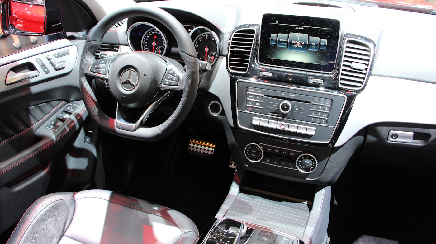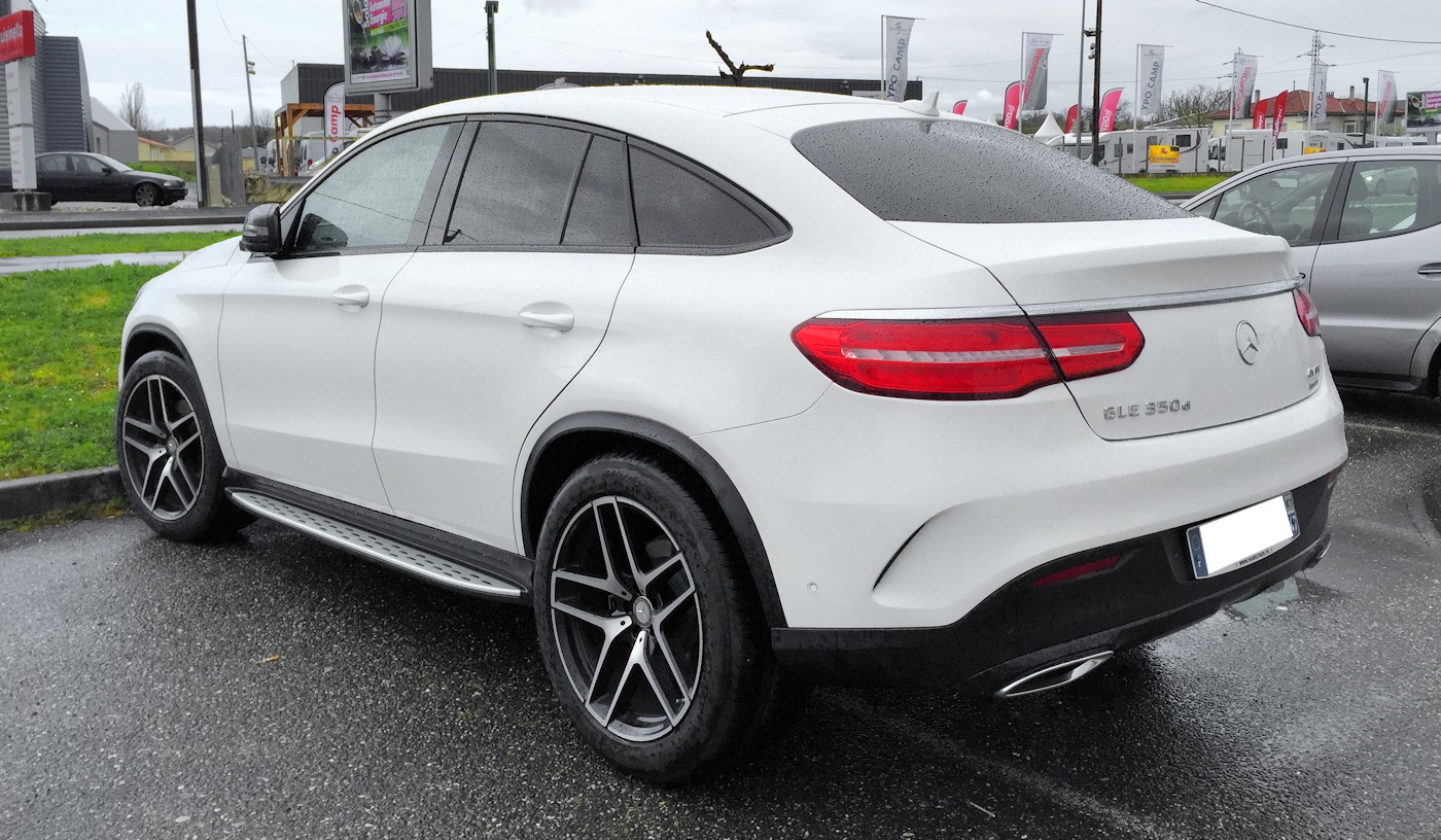 A partir de 83 600 euros : Série + Pack AMG Line extérieur, Kit de carrosserie AMG avec pare-chocs avant et jupe arrière au design spécifique AMG, Lamelle de grille de calandre noire // Pack Sport Black, Grille de calandre noire, Coques de rétroviseurs peintes en noir, Jupes avant et arrière peintes en noir brillant, Baguette de ligne de ceinture et entourage des vitres en noir, Sorties d'échappement chromées // Jantes alliage AMG 53 cm (21’’) à 5 doubles branches, bicolores, avec monte 275/45 R21 AV et 315/40 R21 AR // Marchepieds en acier inoxydable avec picots en caoutchouc // Vitres latérales arrière et lunette arrière en verre teinté foncé // Pack AMG Line intérieur :, Garnitures en cuir Nappa – 3 coloris au choix, Sièges avant sport à réglage intégralement électrique, Volant sport multifonctions en cuir Nappa à 3 branches avec méplat, Combiné d’instruments au design spécifique, Pédalier sport en acier brossé avec picots en caoutchouc, Tapis de sol AMG // Inserts décoratifs en aluminium brossé // Éclairage d'ambiance (avec choix de 3 couleurs différentes) // Pack AIRMATIC :, Système d'amortissement adaptatif (ADS) incluant reconnaissance de chargement et suspension pneumatique avec correcteur d'assiette, Limiteur de vitesse en descente, Sur GLE 400 4MATIC et 500 4MATIC : ajout d'un 5ème programme de conduite "Sport +" // COMAND Online* avec pavé tactile TOUCHPAD: système multimédia avec écran couleur 21 cm (8") et commande vocale LINGUATRONIC, navigation 3D (cartographie Europe par disque dur intégré avec mise à jour comprise pendant 3 ans), fonction Live Traffic Information (3 ans d'abonnement inclus), assistant de signalisation routière, double tuner radio, lecteur CD/DVD audio/vidéo, deux interfaces USB (dans l'accoudoir central), port de carte SDHC, streaming audio, navigateur internet** , fonction appel d'urgence, notice d'utilisation intégrée et remote Online. // Sièges avant chauffants // Détecteur d'angle mort // Système de sonorisation Surround Harman Kardon® Logic7® : 14 HP dont 4 Surround et 1 subwoofer ; 830 W ; compatibilité DTS et Dolby Digital 5.1