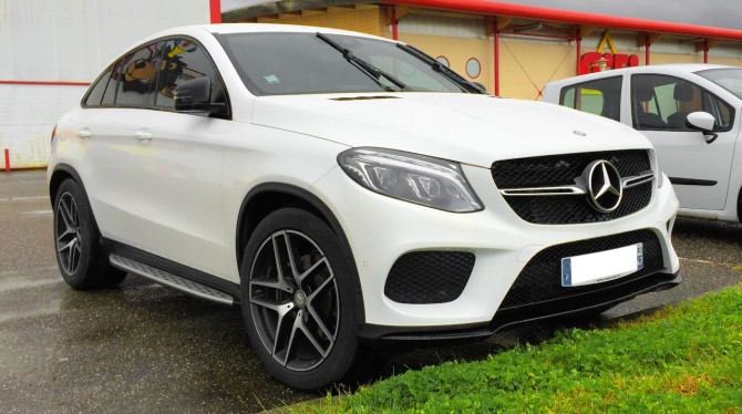 A partir de 87 700 euros : Peinture métallisée // Pack AMG Line extérieur, Kit de carrosserie AMG avec pare-chocs avant et jupe arrière au design spécifique AMG, Lamelle de grille de calandre noire // Jantes alliage AMG 53 cm (21’’) à 5 doubles branches, gris titane, avec monte 275/45 R21 AV et 315/40 R21 AR // Marchepieds en acier inoxydable avec picots en caoutchouc // Vitres latérales arrière et lunette arrière en verre teinté foncé // Pack exclusif intérieur, Garnitures en cuir - 4 coloris au choix, Sièges avant confort, Parties supérieure et inférieure de la planche de bord en similicuir ARTICO, Tapis de sol en velours Pack AMG Line intérieur (P29) avec garnitures en cuir Nappa disponible sans supplément de prix en substitution du Pack exclusif intérieur. // Éclairage d'ambiance (avec choix de 3 couleurs différentes) // Inserts décoratifs en peuplier noir // COMAND Online* avec pavé tactile TOUCHPAD : système multimédia avec écran couleur 21 cm (8") et commande vocale LINGUATRONIC, navigation 3D (cartographie Europe par disque dur intégré avec mise à jour comprise pendant 3 ans), fonction Live Traffic Information (3 ans d'abonnement inclus), assistant de signalisation routière, double tuner radio, lecteur CD/DVD audio/vidéo, deux interfaces USB (dans l'accoudoir central), port de carte SDHC, streaming audio, navigateur internet** , fonction appel d'urgence, notice d'utilisation intégrée et remote Online. // Climatisation automatique confort THERMOTRONIC 3 zones incluant entre autres réglages séparés à l'arrière, 3 modes de ventilation (Focus/Medium/Diffus) et buses de ventilation supplémentaires dans les montants B // Détecteur d'angle mort // Pack Mémoires :, Sièges avant, colonne de direction et rétroviseurs extérieurs tout électrique avec fonction Mémoires, Supports lombaires réglables électriquement côté conducteur et passager (4 positions), Rétroviseur extérieur côté passager incluant fonction d'aide au stationnement // KEYLESS-GO : démarrage sans clé incluant poignées de porte avec inserts chromés // Système de sonorisation Surround Harman Kardon® Logic7® : 14 HP dont 4 Surround et 1 subwoofer ; 830 W ; compatibilité DTS et Dolby Digital 5.1 // Sièges avant chauffants // Pack AIRMATIC :, Système d'amortissement adaptatif (ADS) incluant reconnaissance de chargement et suspension pneumatique avec correcteur d'assiette, Limiteur de vitesse en descente, Sur GLE 400 4MATIC et 500 4MATIC : ajout d'un 5ème programme de conduite "Sport +"