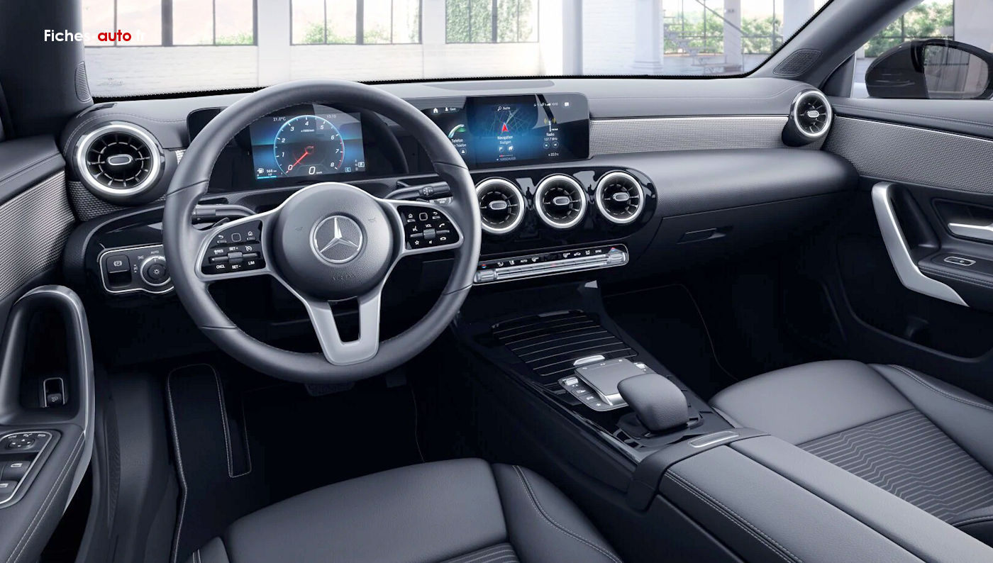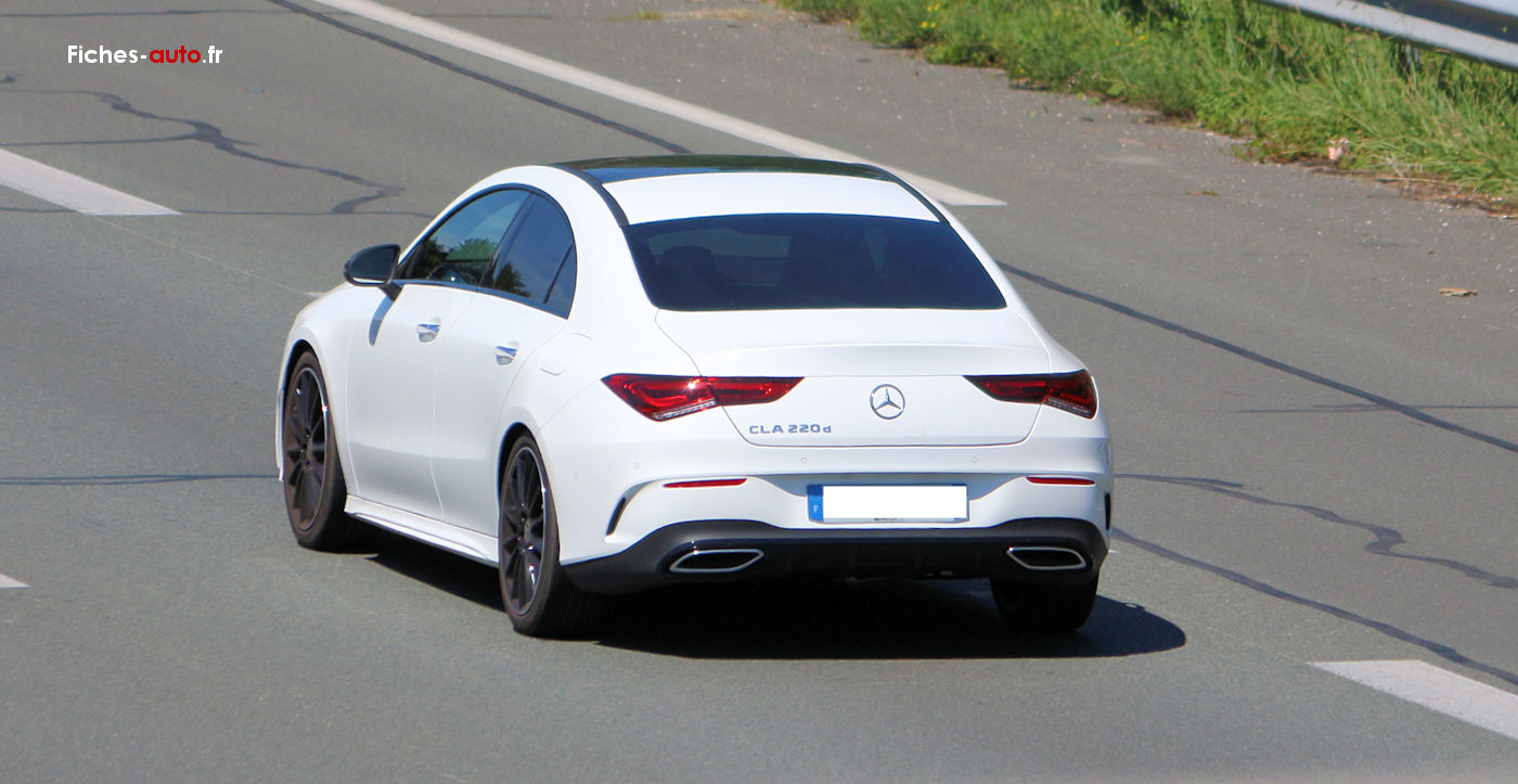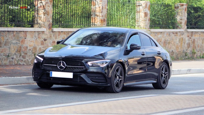 (Source Mercedes mai 2021) A partir de 36 050 euros (37 250 euros break) : Projecteurs Hautes Performances à LED // Aide au Parking Active (APA) avec PARKTRONIC (capteurs à ultrasons intégrés aux pare-chocs avant et arrière) // Caméra de recul haute résolution ( 1280 x 720 dpl) avec lignes de guidage // Climatisation automatique THERMOTRONIC à 2 zones // Connexion Bluetooth pour téléphone portable // Ecran média tactile haute résolution (1 920 x 760 pixels) de 26cm (10,25") // Fonction de démarrage sans clé KEYLESS GO // Hayon EASY-PACK à commande électrique (uniquement sur CLA Shooting Brake) // Instrumentation digitale avec écran central de 18cm (7") // Régulateur de vitesse TEMPOMAT avec limiteur de vitesse // Rétroviseurs extérieurs rabattables électriquement // Système de commande vocale et assistant personnel activable grâce à "Hey Mercedes" // Système de navigation Mercedes-Benz avec données cartographiques intégralement stockées sur disque dur, affichage 3D et Car-to-X Communication // Système multimédia MBUX // Boîte de vitesses à double embrayage 7G-DCT/8G-DCT selon motorisation // Direction paramétrique avec assistance asservie à la vitesse // Train de roulement confort avec châssis surbaissé de 15 mm