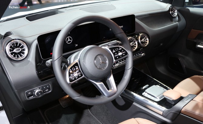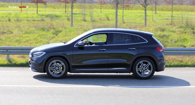 (Source Mercedes Mais 2021) A partir de 42 300 euros : Boîte automatique 7G/8G-DCT selon motorisation, Accoudoir dans la console centrale // Aide au parking active PARKTRONIC avec capteurs à ultrasons avant/arrière et caméra de recul haute résolution (1 280 x 720 dpi) avec lignes de guidage // Climatisation automatique THERMOTRONIC à 2 zones // Connexion Bluetooth® pour téléphone portable // Dossiers des sièges arrière rabattables selon un rapport de 40/20/40 // Fonction de démarrage sans clé KEYLESS-GO // Pavé tactile Touchpad // Prise 12 V dans la console centrale // Prise 12 V dans l'espace de chargement // Rétroviseurs extérieurs rabattables électriquement // Système de commande vocale et assistant personnel activable grâce à "Hey Mercedes" // Système de navigation par disque dur avec affichage 3D // Système multimedia MBUX avec écran média tactile haute résolution (1 920 x 760 pixels) de 26 cm (10,25'') et instrumentation digitale avec écran de 18 cm (7'') // Hayon EASY-PACK à commande électrique // Interface USB dans le vide-poches // Interface USB sur la console centrale arrière // Assistant de franchissement de ligne actif // Assistant de limitation de vitesse par lecture des panneaux // ATTENTION ASSIST : système de détection de somnolence // Capteur de pluie et de luminosité // Désactivation automatique de l'airbag passager avant // DYNAMIC SELECT avec les programmes de conduite // Système de contrôle de la pression des pneus // Freinage d'urgence assisté actif // Fixations iSize pour siège-enfant avec sangle Top Tether aux places extérieures arrière // Frein multicollision // Projecteurs hautes performances à LED // Régulateur de vitesse TEMPOMAT avec limiteur de vitesse