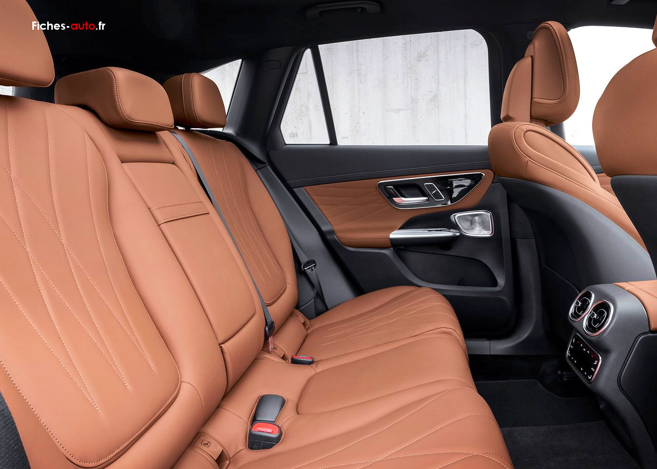 L'habitabilité du GLC reste relativement similaire à celle de la génération précédente. Avec un empattement empattement qui a à peine agrandi par rapport à l'ancien, on bénéficie malgré tout dun espace décent à larrière, grâce notamment aux sièges bien creusés. Cependant, le tunnel de transmission central, typique des véhicules thermiques à moteur longitudinal, est très encombrant. Cela, combiné à une assise centrale plutôt rudimentaire, fait que ce SUV est idéal pour quatre passagers, mais devient bien moins confortable et habitable pour cinq.