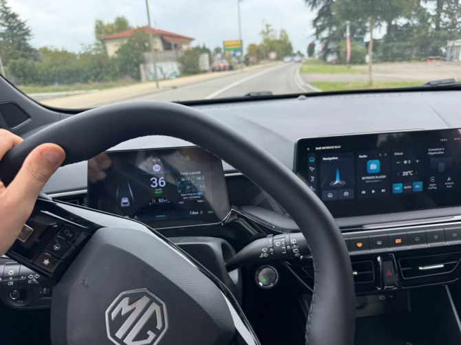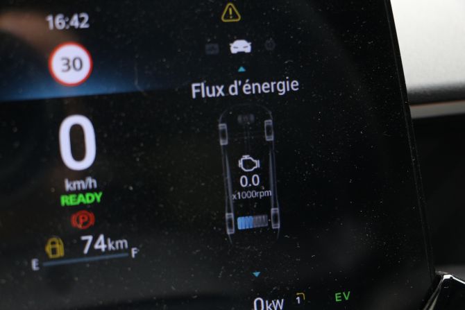 Basé sur la même idée que l'E-Tech hybride de Renault, l'hybridation se concentre ici dans la boîte de vitesses et non pas dans le lien entre le moteur et la boîte comme c'est souvent le cas (avec un moteur électrique au niveau de l'embrayage). On a donc une boîte qui propose tout un tas de modes de fonctionnement en multipliant les combinaisons possibles (thermique comme générateur, comme force motrice, deux moteurs électrique à l'intérieur etc.), ce qui rappelle encore une fois l'hybride de Renault. On a donc parfois des comportements un peu étranges comme des montées en régimes soudaines qui semblent décorélées de la vitesse, ce qui indique par exemple que le thermique recharge la batterie en faisant tourner le moteur électrique générateur situé dans la boîte (qui se cumule donc avec un moteur plus puissant pour la traction). Toutefois, ces comportements ne sont pas si envahissants et chaotiques que l'on peut voir sur l'équivalent français E-Tech, et c'est donc plus agréable à vivre. Et grosso-modo l'agrément est plutôt bon et constant, et il n'y a que quand on cherche à la pousser aux limites qu'on remarquera quelques petits manquement de ci et de là sans que ce soit réellement problématique. N'espérez toutefois pas de mode manuel, car il n'y a pas cette fonction et avec seulement 3 rapports dans la boîte (pas de place pour plus, même si Renault a poussé à 4).