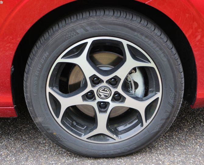 Qu'on se le dise, le châssis de la MG3 est de bon augure, avec une suspension qui tient très bien la caisse avec donc forcément un peu de raideur dans ses "guiboles". Toutefois, il s'agit d'une raideur qui n'est pas excessive et qui amène plus de bienfait qu'autre chose, à savoir le sentiment d'une voiture qui est rigoureuse et qui ne s'avachit pas. Hélas, et c'est ici que les choses deviennent plus négatives, les gommes installées d'origine sont de piètre qualité ... Le pauvre châssis mériterait en effet mieux car il a beau être rigoureux, dès qu'on cherche à la pousser un peu les pneus ne suivent pas et se mettent à glisser lamentablement. On a donc un bon châssis associé à une mauvaise tenue de route, et il est plus que frustrant de devoir changer des pneus neufs par de nouveaux si l'on veut avoir une MG3 suffisamment convaincante. Quel dommage d'avoir fait des économies de ce genre car les pneus anéantissent les prestations routières, et il y a fort à parier que certains clients ne passeront pas commande suite à un essai pour cette raison, sans forcément savoir que le problème ne tient qu'à des pneus et non pas une mauvaise conception de l'auto.