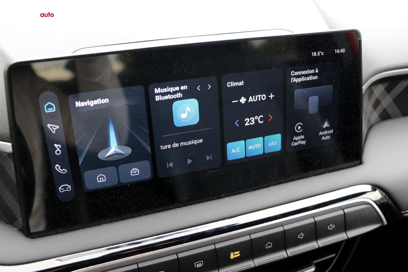 Certes assez basique au niveau software comme au niveau de la qualité d'image, nous n'avons toutefois pas l'impression d'être en troisième lasse comme c'est la cas avec une Dacia Sandero (même 4ème classe). A cela s'ajoute une bonne ergonomie générale avec des menus construits de manière logique et ordonnée. Mais le plus important est là, car j'imagine que vous aussi estimez indispensable d'avoir Apple Car Play et Android Auto, eh bien sachez qu'ils sont bel et bien de la partie.