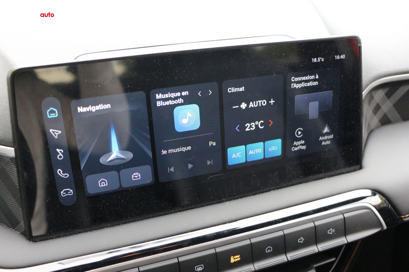 On dispose aussi de boutons physiques qui sont des raccourcis rapides comme par exemple la ventilation, qui doit se régler de manière tactile par la suite.