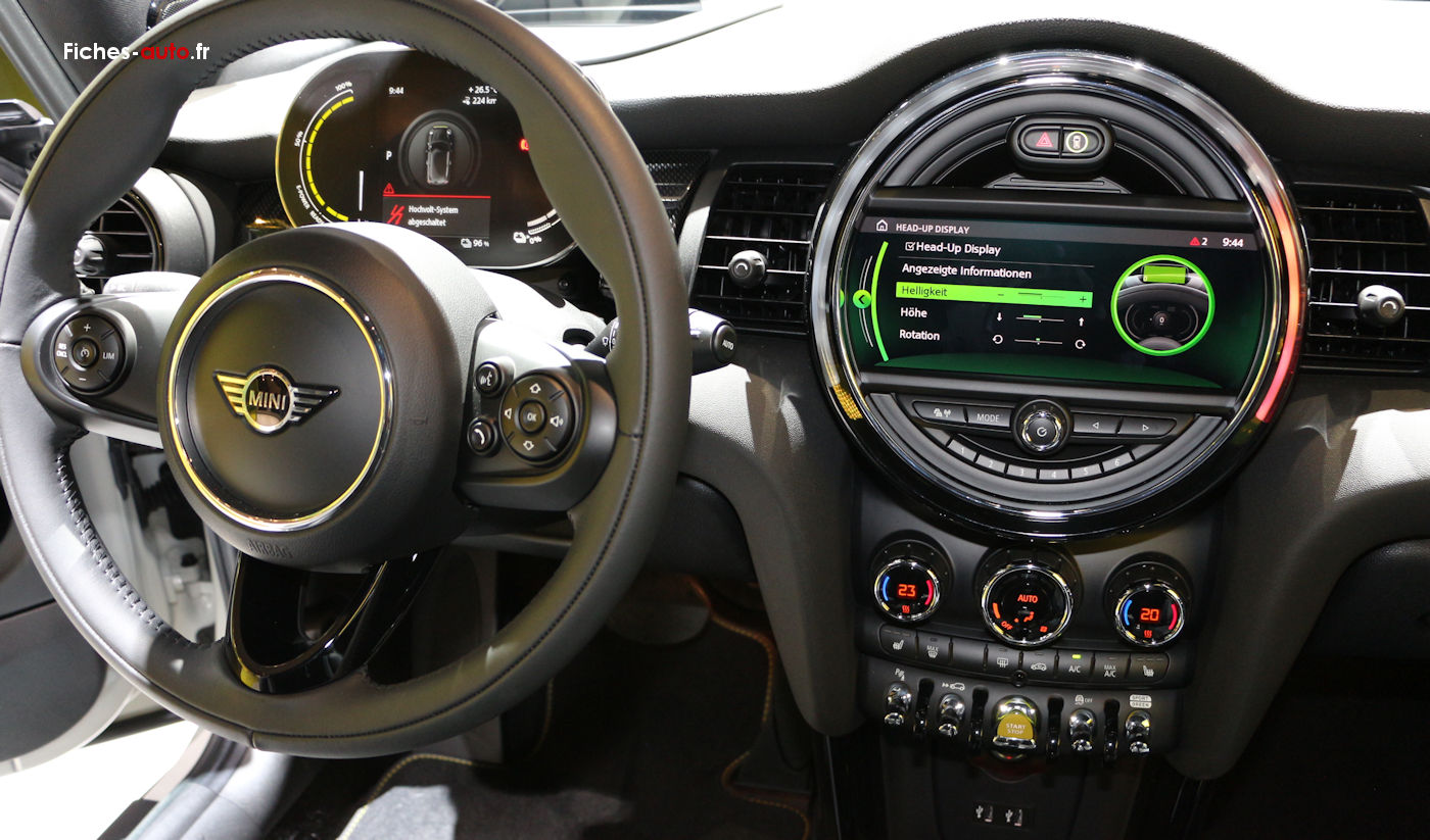 (de 1200 à 1400 euros selon la finition de base) Accoudoir central avant inclinable en 4 positions, Autoradio MINI Visual Boost avec écran 6,5”, Détecteur de pluie et allumage automatique des projecteurs, MINI Connected, Touches multifonctions sur le volant avec régulateur de vitesse et fonction freinage (sur MINI Cooper / MINI Cooper D), Système de navigation MINI avec écran 6,5”, Système mains libres Bluetooth avec Snap-in