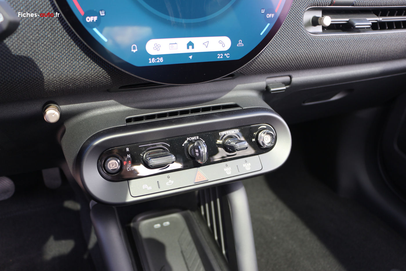 La vedette à bord, c'est évidemment l'écran central OLED rond de 240 mm. Il regroupe presque tout : multimédia, navigation, climatisation, paramètres de conduite, affichages liés à l'auto et même certaines fonctions secondaires qui auraient mérité de rester sur de vraies commandes. Visuellement, c'est très fort. La définition est bonne, les couleurs sont flatteuses et l'ensemble donne une vraie identité à l'habitacle. On ne peut pas lui enlever ça : sur le plan du style, Mini a tapé juste.