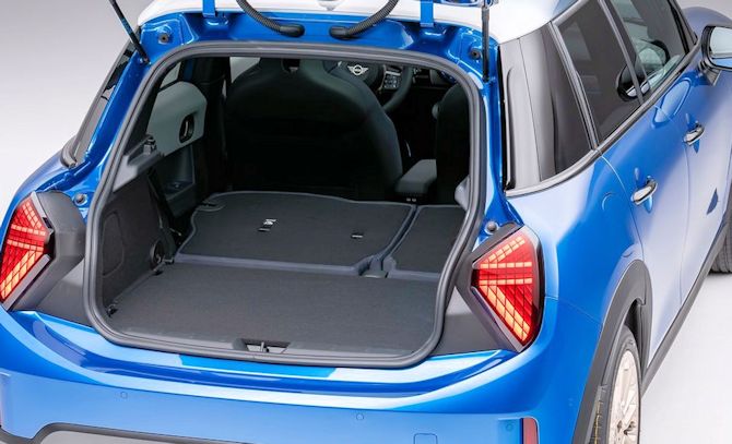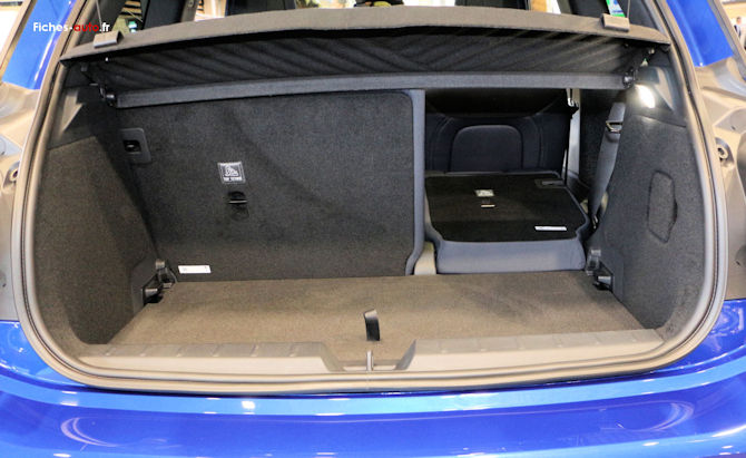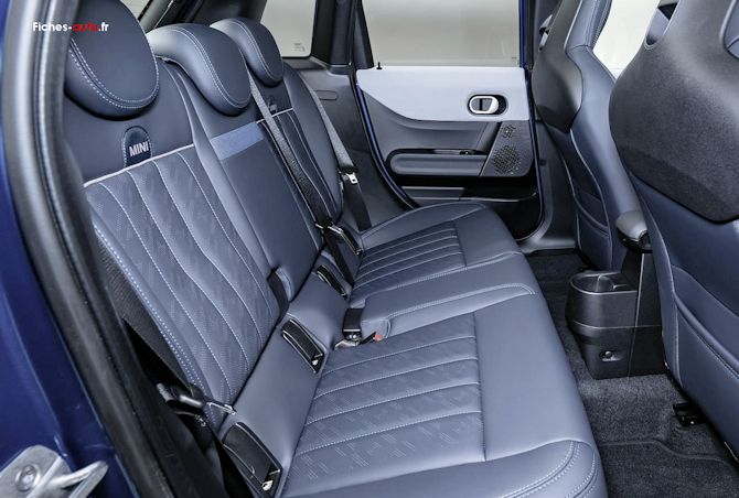 La banquette est fractionnable en 60/40, solution classique mais au moins ça se fractionne. En revanche, il ne faut pas espérer une modularité très poussée : pas de vraie banquette coulissante, pas de dossier en trois parties (normal pour une citadine), pas d'astuce particulière digne d'une voiture pensée pour la famille. On est chez Mini, pas chez Dacia avec le Jogger. Concernant le plancher de coffre, il n'y a pas ici de dispositif à signaler si ce n'est pas tout petit espace sous le seuil.