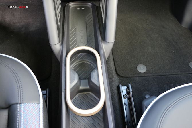 Côté rangements, la Mini souffle le chaud et le froid. On trouve des espaces pour vider ses poches, poser un téléphone ou glisser de petits objets, avec notamment une zone de recharge par induction selon les versions, des porte-gobelets et un petit espace sous la console centrale.La Mini propose finalement pas mal de volume, mais dune manière assez particulière. On trouve de grands espaces ouverts entre les passagers avant, notamment sous la console centrale, qui permettent de poser facilement des objets du quotidien. Sur le papier cest pratique, dans les faits cest plus discutable. Tout est à la vue de tous, rien nest vraiment maintenu (mis à part une petite boite au niveau des coudes), et les objets ont tendance à se balader au moindre virage un peu appuyé. On est donc plus sur du volume que sur du vrai rangement malin, avec un côté un peu brouillon à lusage qui ne colle pas forcément avec le positionnement assez premium affiché.