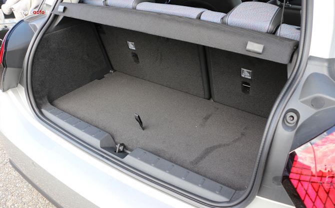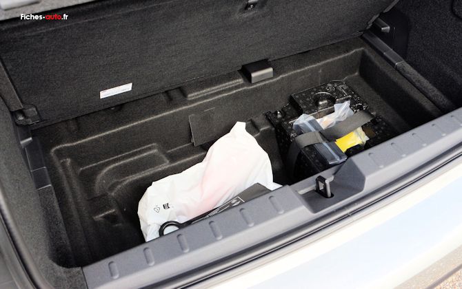 Le coffre suit la même logique. Les 3 portes thermique et électrique culminent à 210 litres, soit un volume franchement ridicule. Cela suffit pour quelques sacs ou des courses, mais pas plus. Une fois la banquette rabattue, on atteint environ 725 litres sur la thermique et 800 litres sur l'électrique. La différence s'explique en partie par l'agencement interne, mais dans tous les cas on reste sur une petite voiture qui n'aime pas trop qu'on lui demande de déménager un appartement. La 5 portes fait mieux avec 275 litres, puis 925 litres une fois la banquette rabattue. Ce n'est toujours pas brillant face à certaines citadines polyvalentes plus rationnelles, mais au moins on atteint le minimum requis pour un usage quotidien crédible.