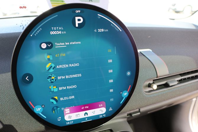 Apple CarPlay et Android Auto sont bien présents sans fil, ce qui est la moindre des choses à ce niveau de prix. Mais leur intégration dans l'écran rond reste un peu maladroite, avec une zone d'affichage qui n'exploite pas totalement la surface disponible (encore une fois, le souci du rond). Ce n'est pas dramatique, mais cela rappelle que le design a parfois pris le pas sur la logique pure. L'affichage tête haute, quand il est présent, améliore nettement les choses car il permet d'éviter de devoir consulter trop souvent l'écran central pour des infos basiques comme la vitesse ou la navigation.